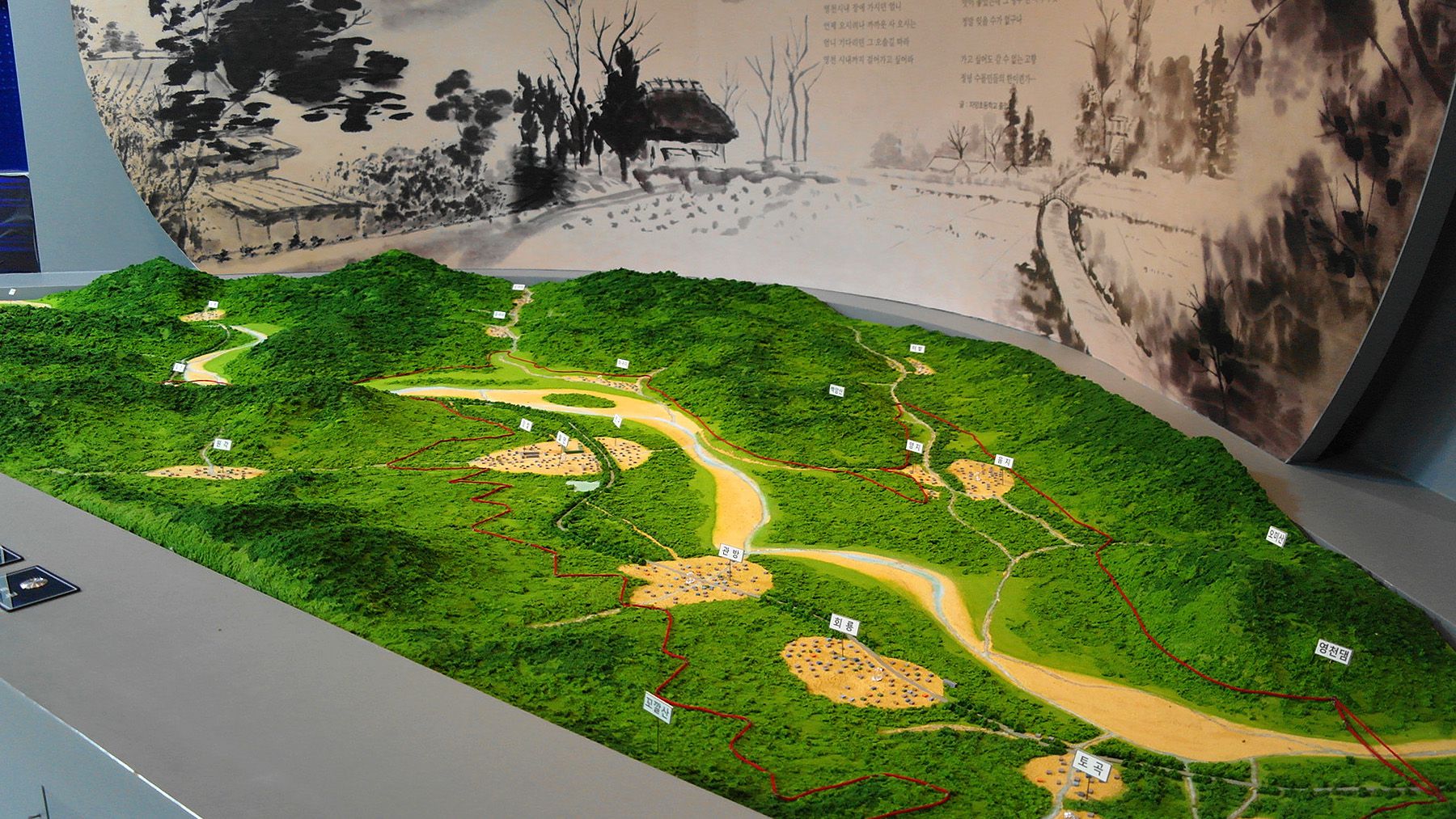 전시관에서 바라보는 영천댐의 모습에서 수몰되어 찾아볼 수 없는 마을의 모습을 그려 보게 됩니다.