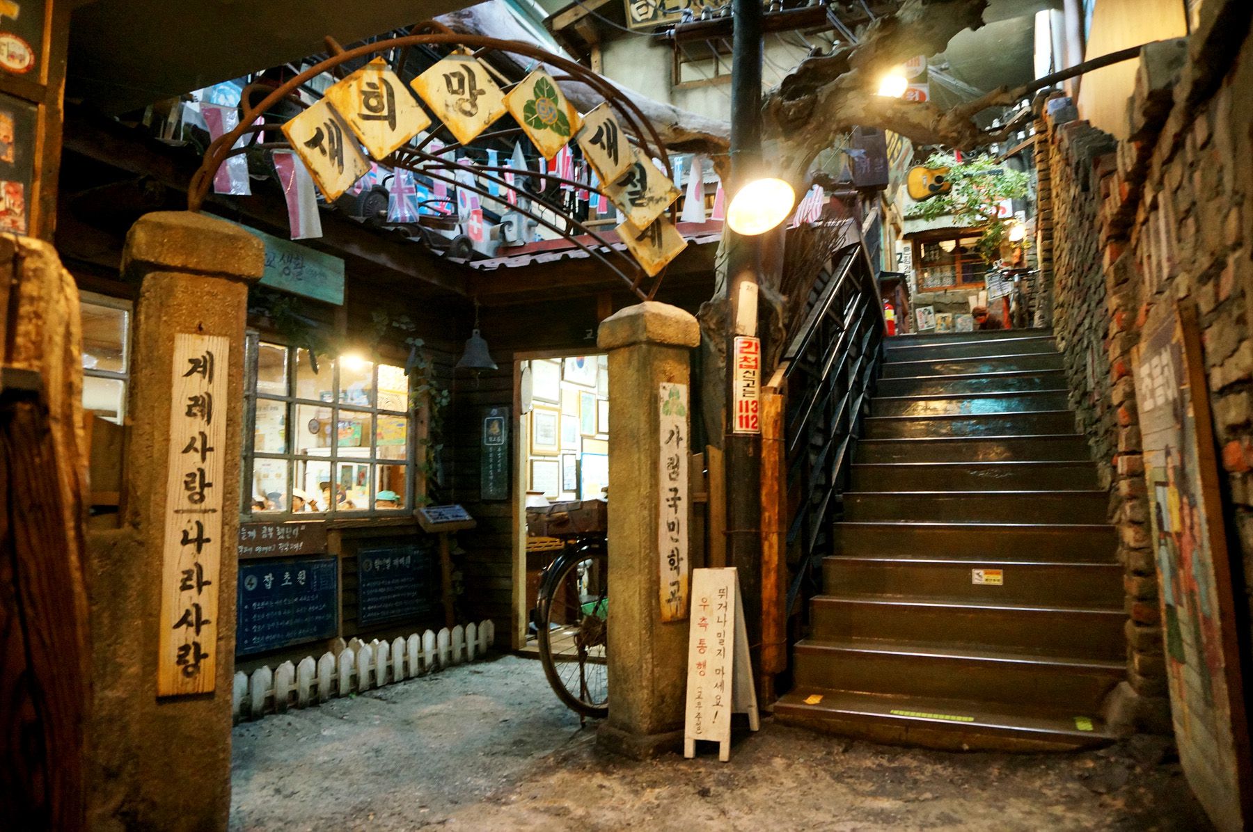 60년대에서 70년대 학교 가는 길을 테마로 한 추억 체험관으로