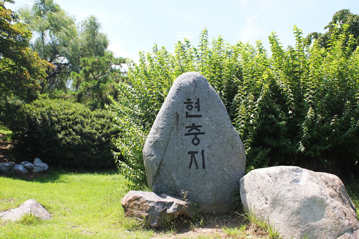 기존에 있던 웅덩이를 살려 조성한 연못인 현충지도 가장자리는 자연석으로 꾸며주고 연못 가운데에는 섬을 만들어 주어 경관미를 더해주고 있습니다.