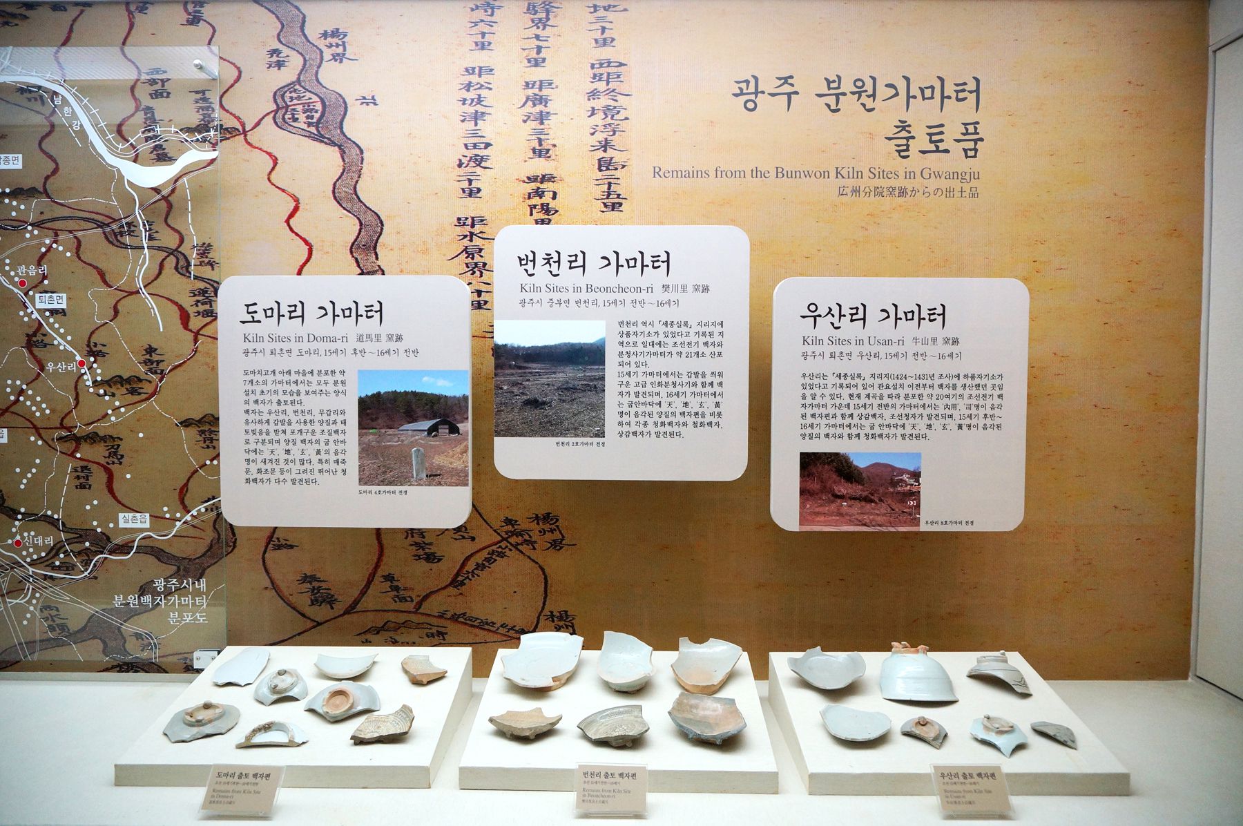 이 관요에 대한 설명과 대표적인 분원 가마터 8곳의 출토품 전시를 통해 분원과 조선백자의 이해를 도와줍니다.