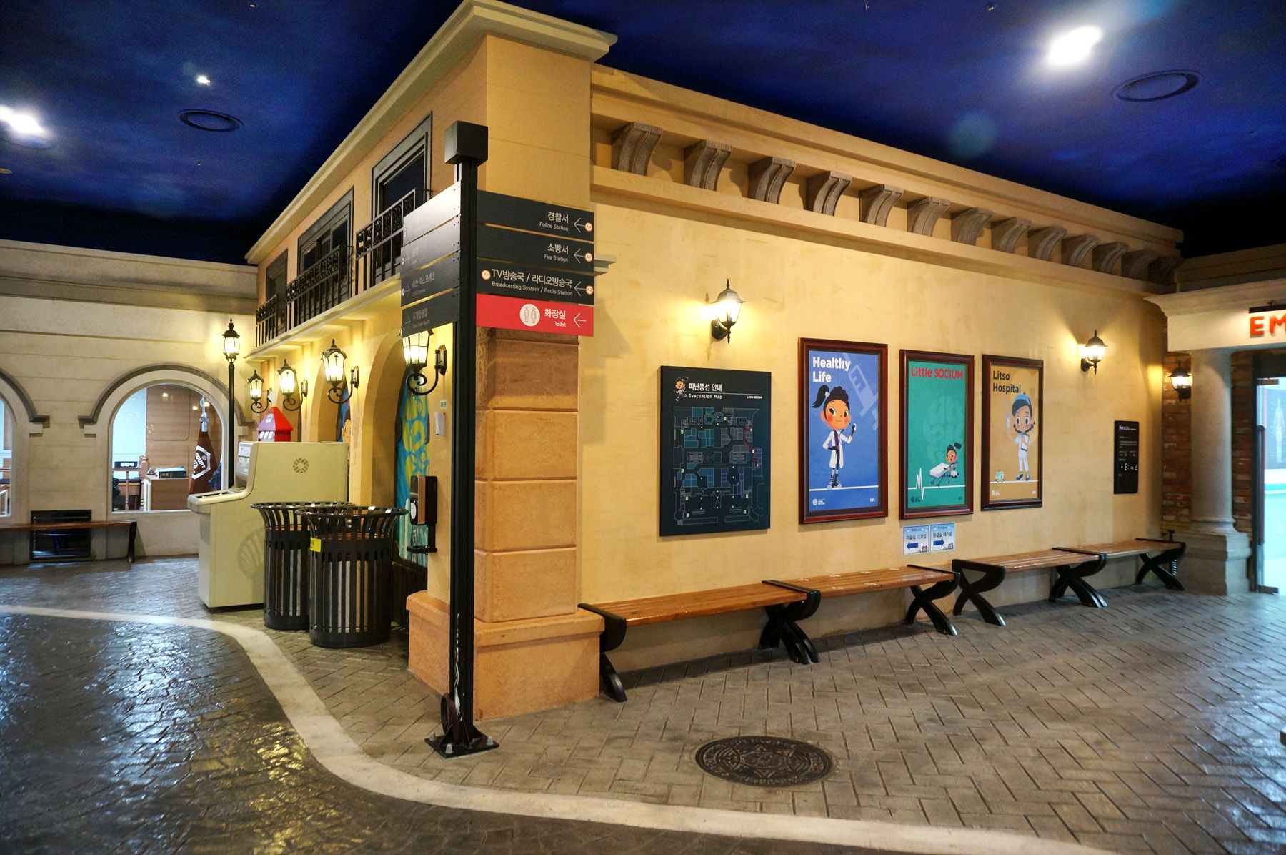 경찰서, 보안센터, 법원, 동물병원, 은행, 치과, 응급실, 소방서, 산부인과 등 다양한 직업을 체험할 수 있습니다.