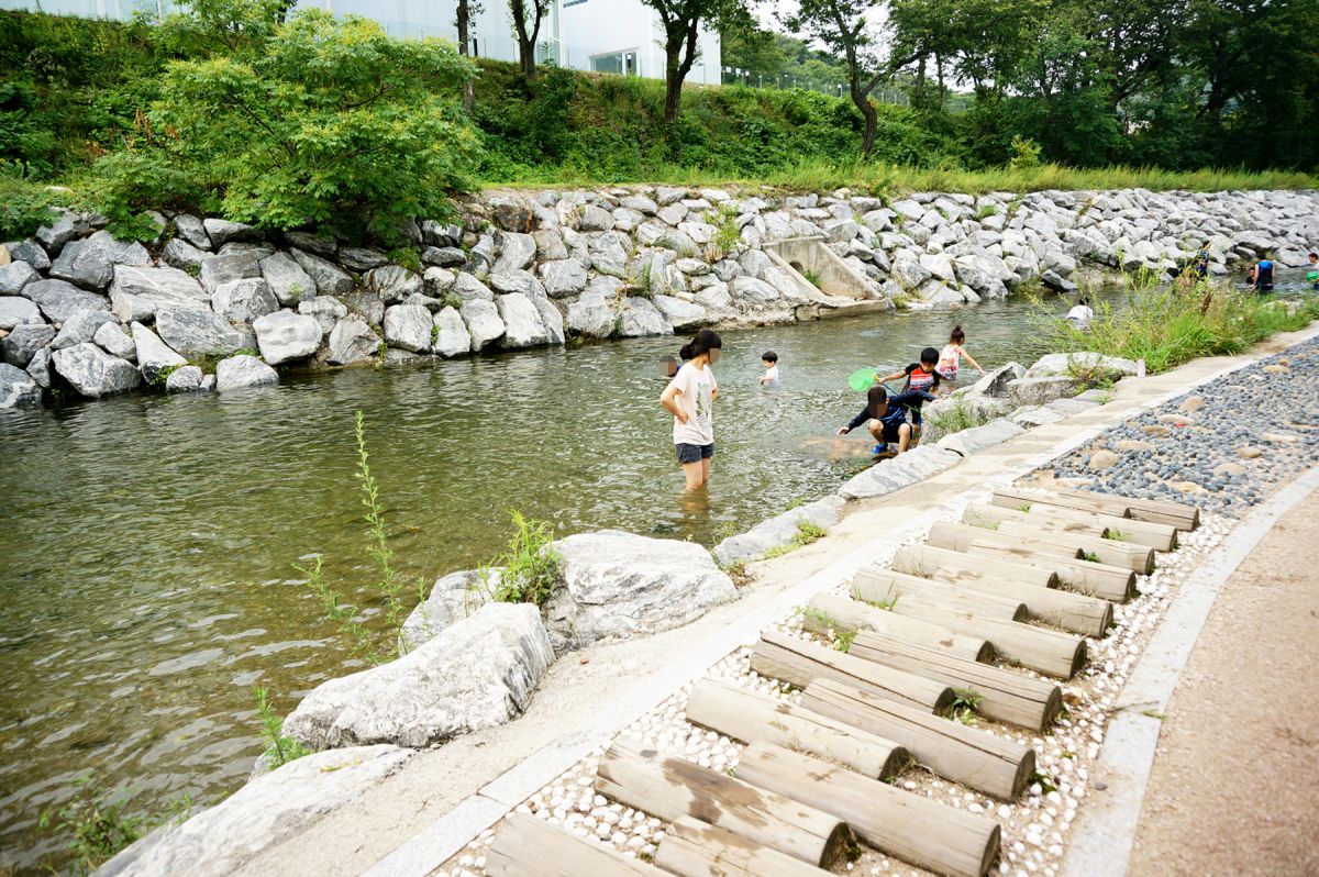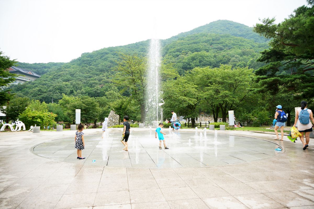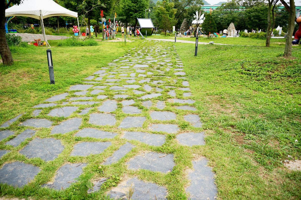 중앙광장 바닥분수를 중심으로 휴게공간과 돌담길, 지압길, 메타세쿼이아길 등