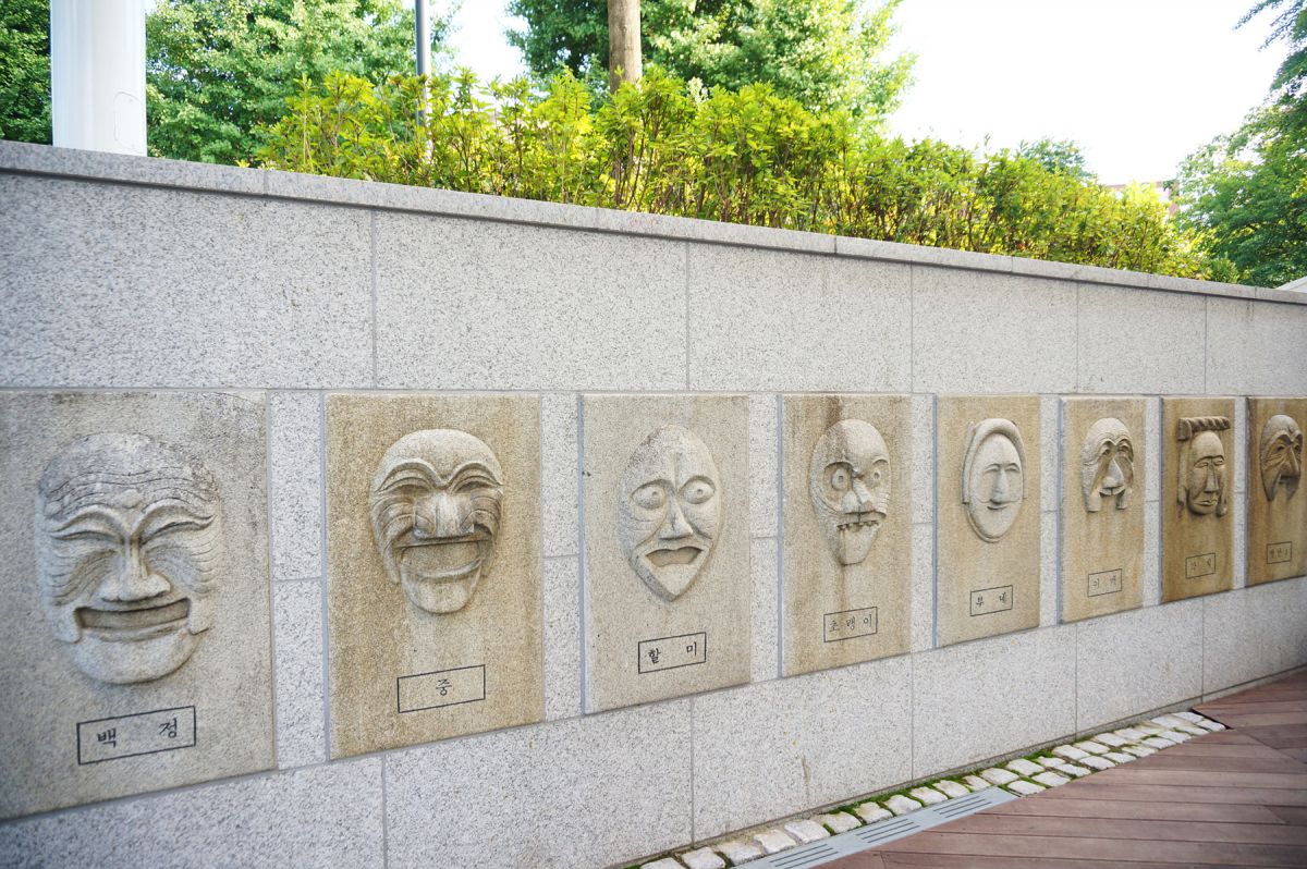 아기자기하고 다양한 볼거리가 있는 공원의 담장은 한국미가 듬뿍 담긴 하회탈의 모습이 되어 있어