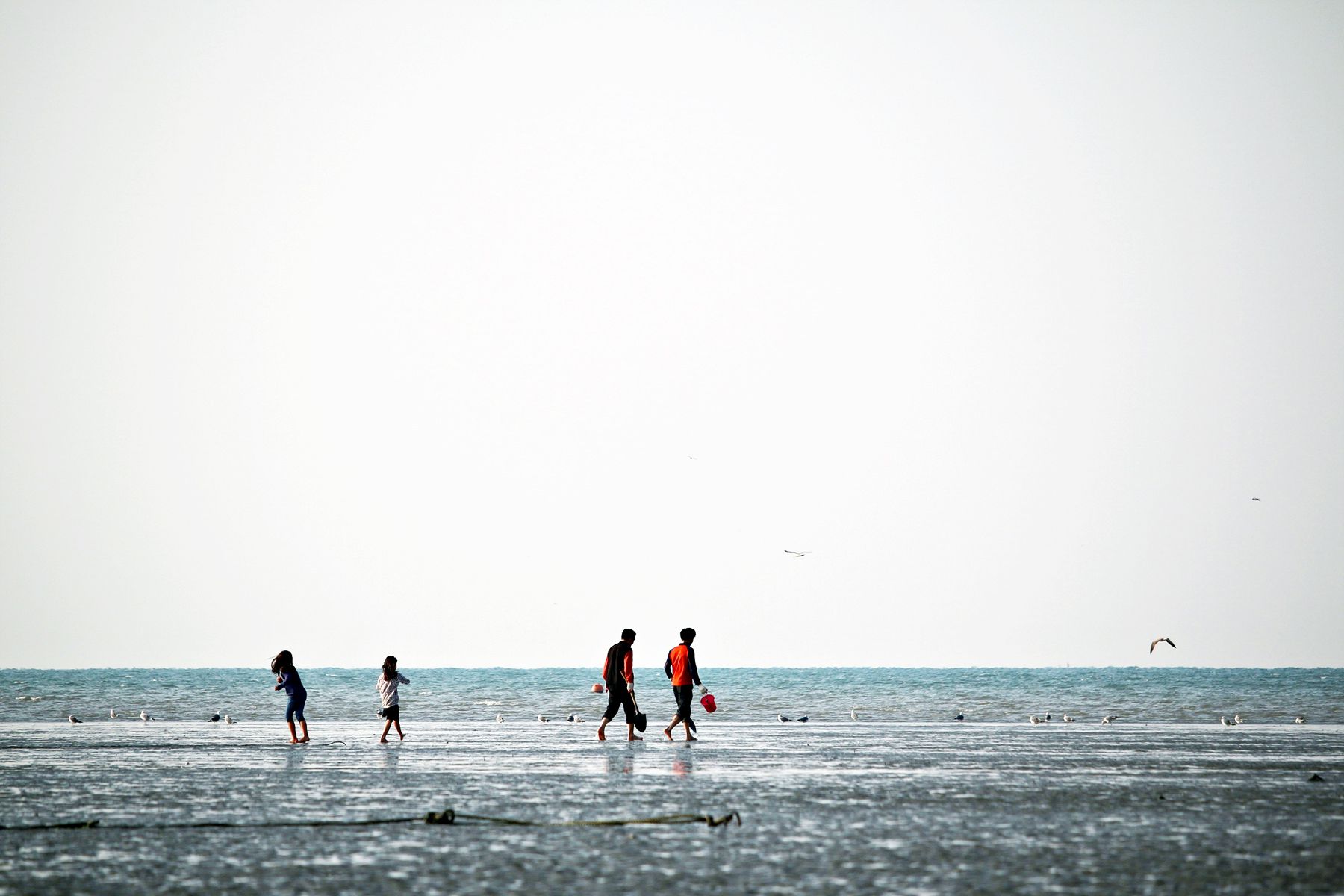 갯벌이 단단해서 발이 잘 빠지지 않아아이들과 함께 갯벌체험을 즐기기 좋습니다.