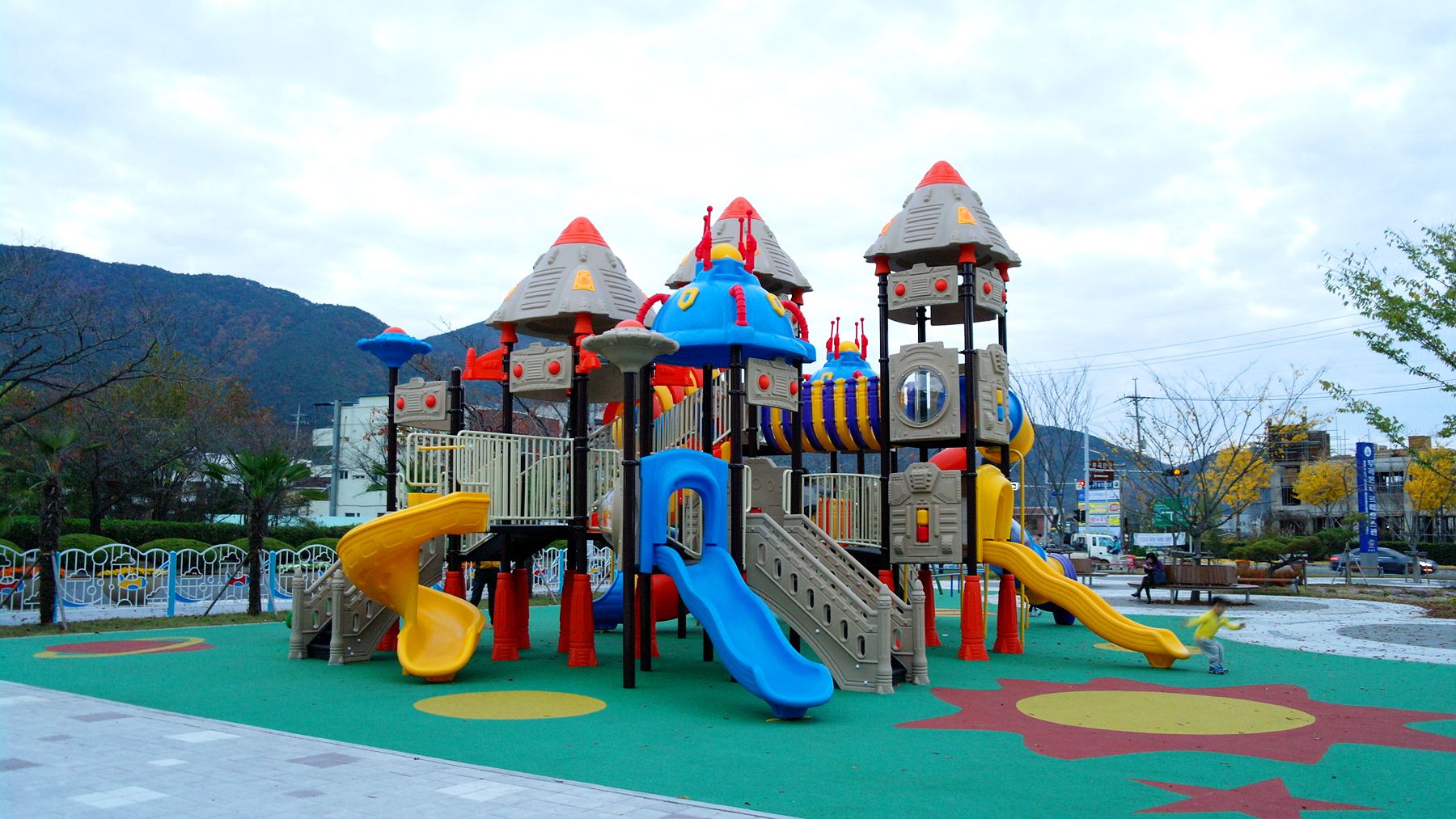 야외 놀이터는 물론이고, 인공 벽천 분수와 공원 등이 잘 조성이 되어 있습니다.