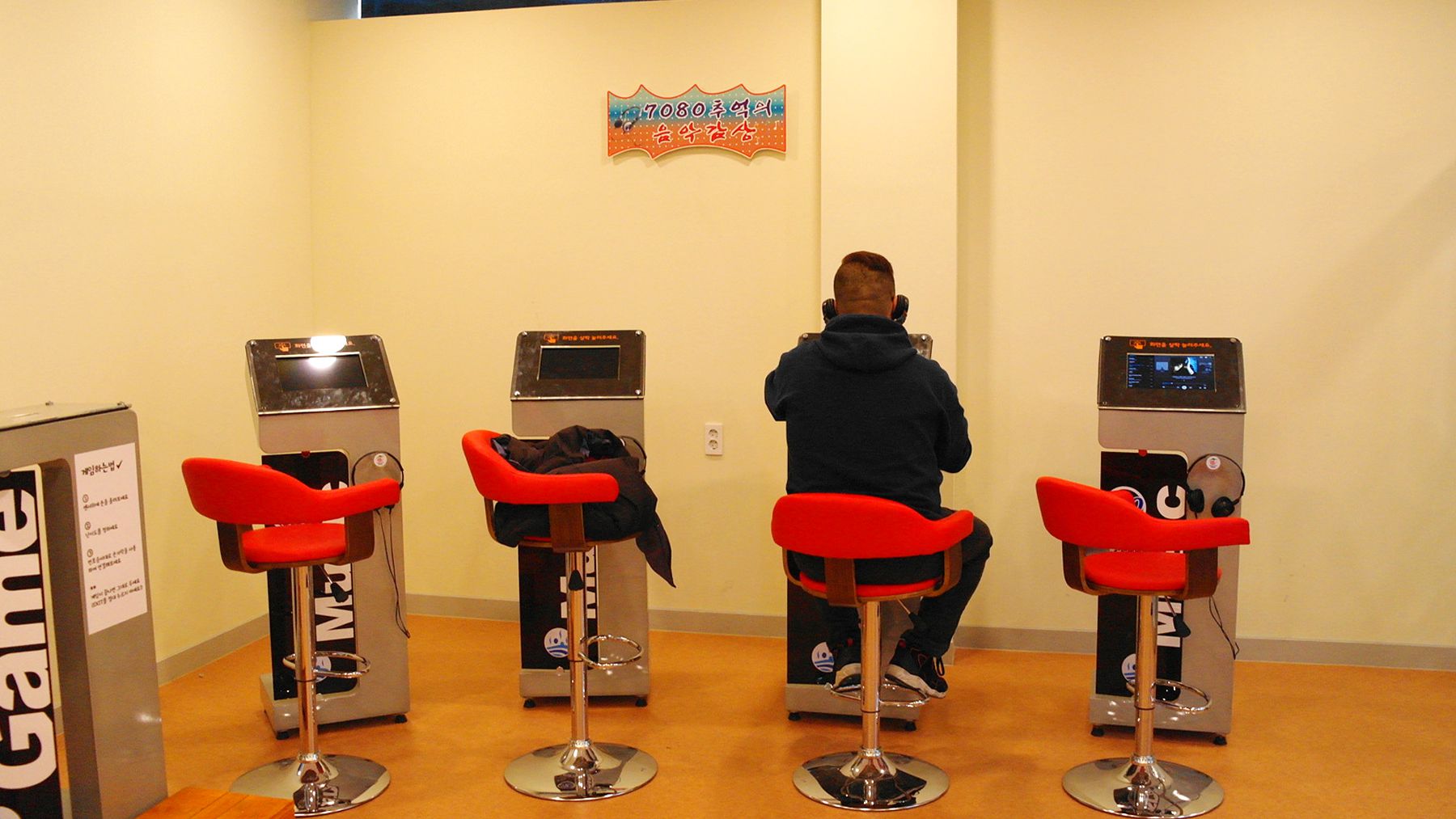 7080 추억의 음악 감상실에서는 헤드셋을 착용하고 원하는 노래를 들을 수 있어