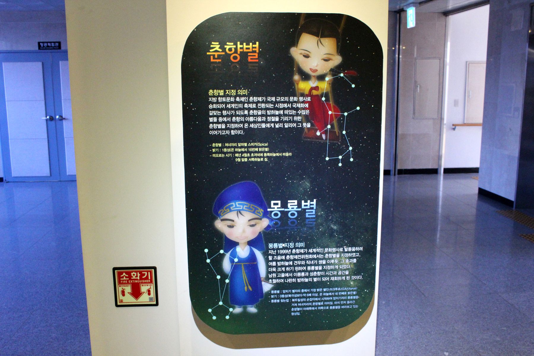 별자리에 대한 전시와 함께 춘향별, 몽룡별에 대한 설명도 함께 있는데 남원의 고유문화를 별자리와 접목시킨 점이 흥미롭습니다.