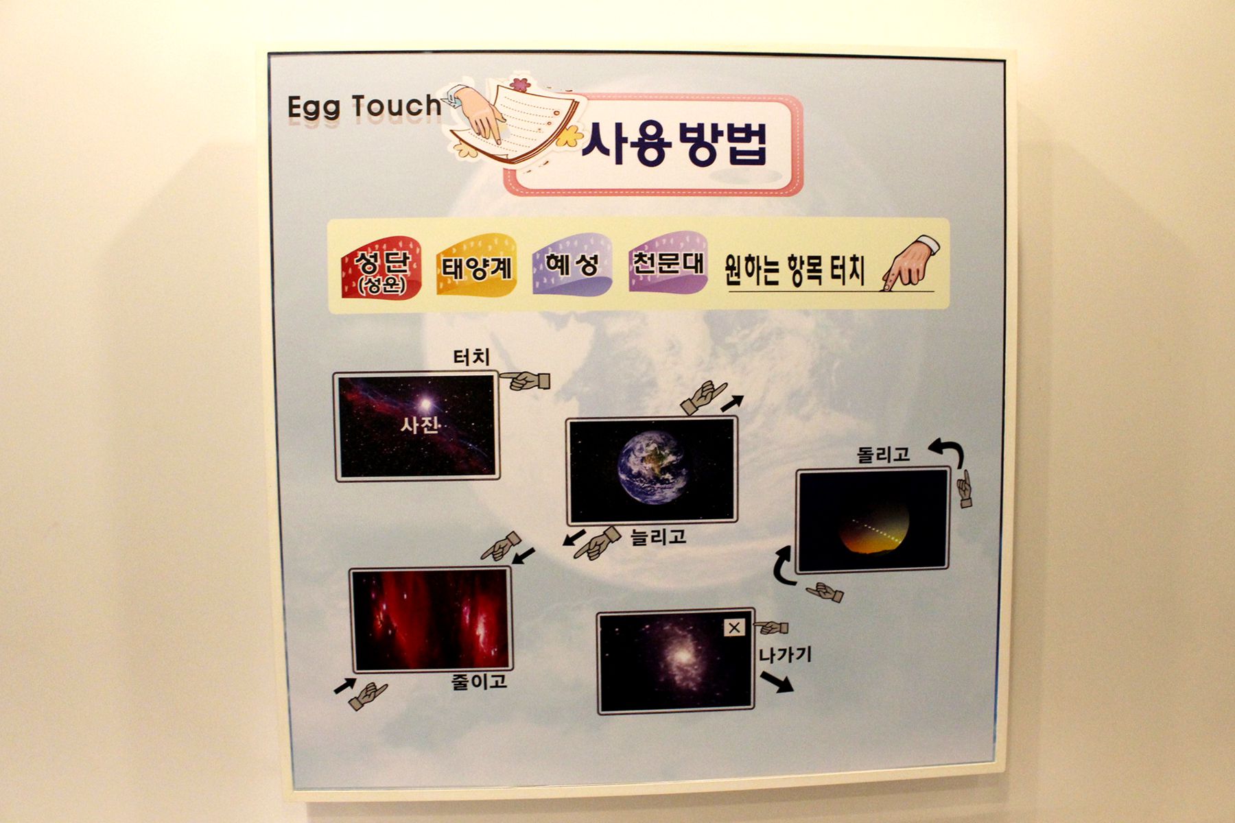 전시관에 마련된 에그 터치를 통해 천체 정보를 사진, 동영상 등으로 확인할 수 있습니다.