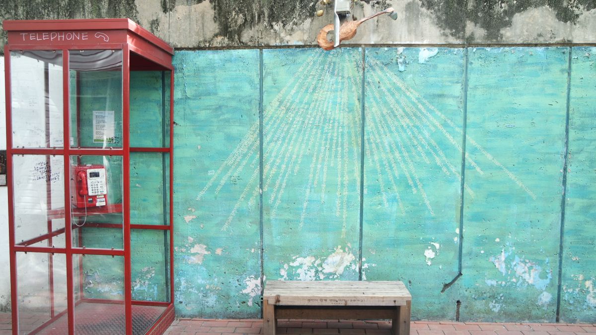 이곳은 시민참여코너로 김광석노래중 대표하는 '이등병의 편지' 을 주제로 펜스에 좌물쇠와 군번줄을 채워 사랑과 소원을 이루기 위해 기도하는 공간입니다