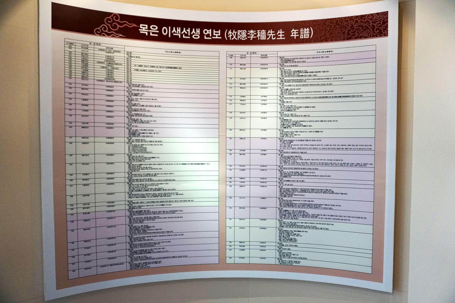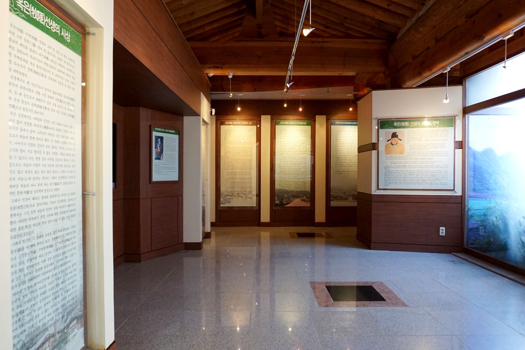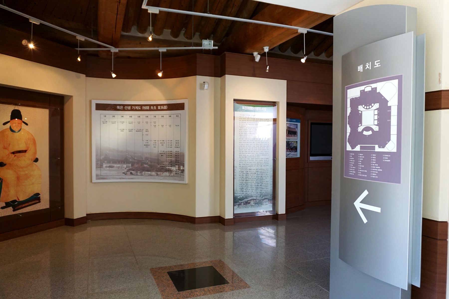 목은기념관 안에서는 목은의 연보, 가계도, 교육사상, 유물 등 목은선생에 대한 다양한 정보를 만날 수 있습니다.