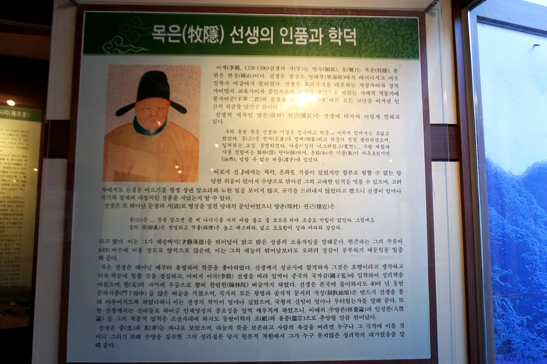 고려의 성리학자이며 삼은의 한 사람인 목은 이색 선생을 기념하기 위해 마련된 목은기념관은