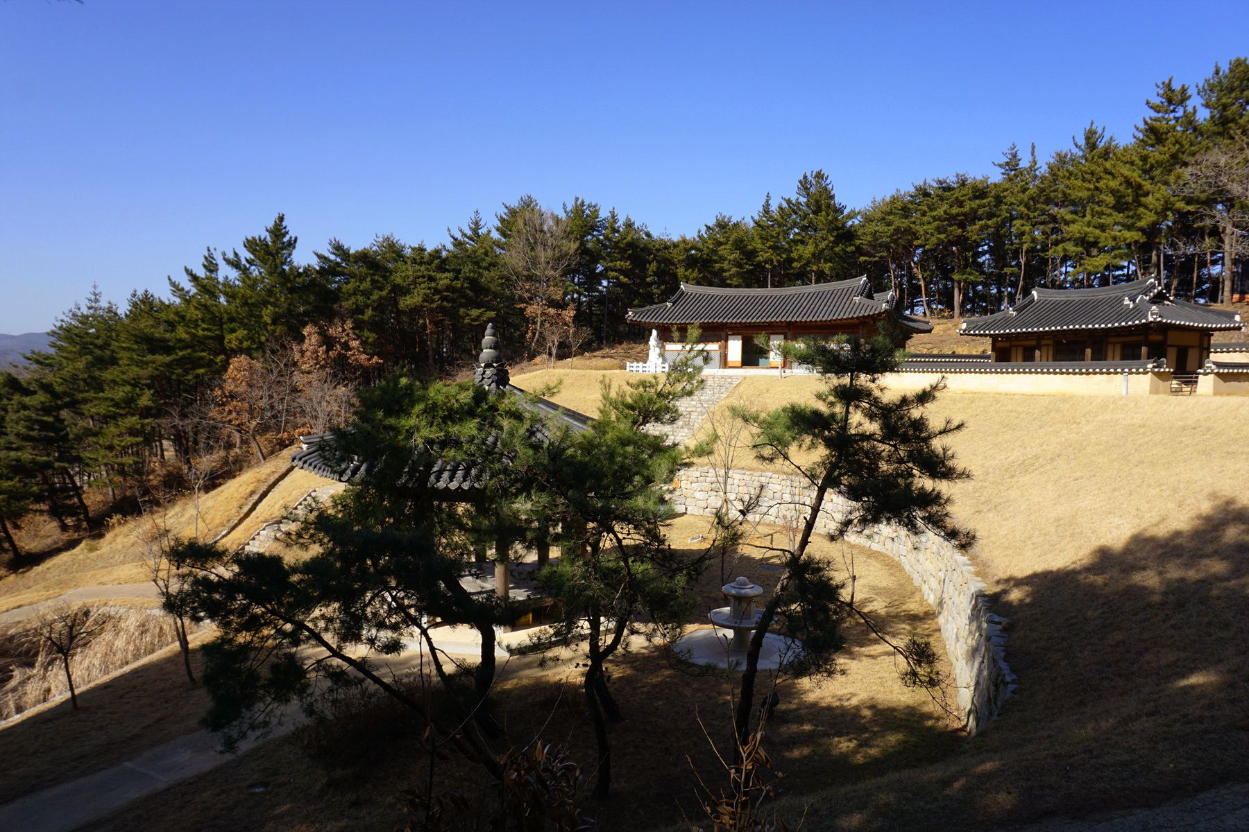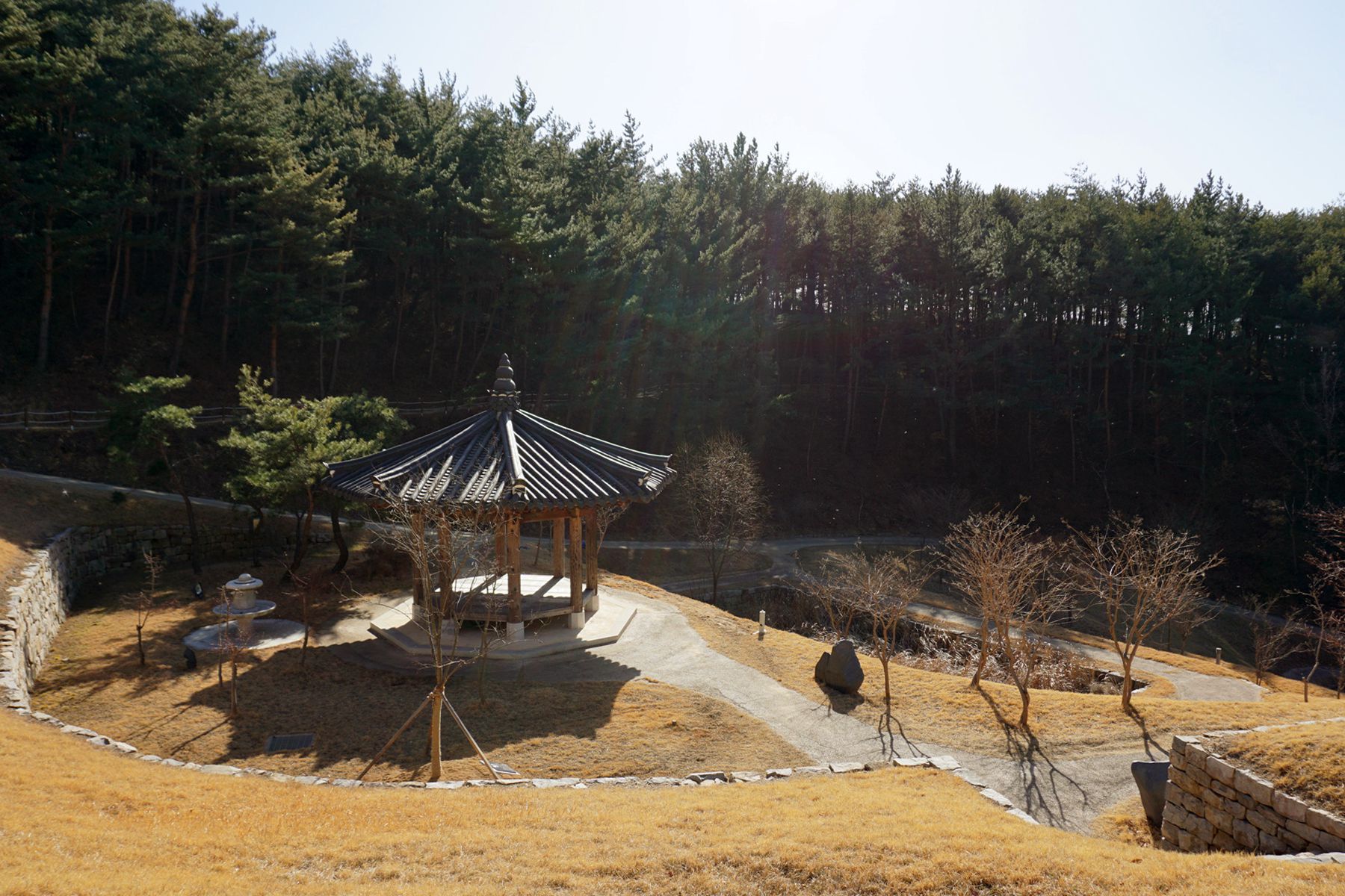 생가지터 뒤쪽으로는 울창한 소나무 숲이 위치하고 있어 한적하게 쉬어가기 좋습니다.