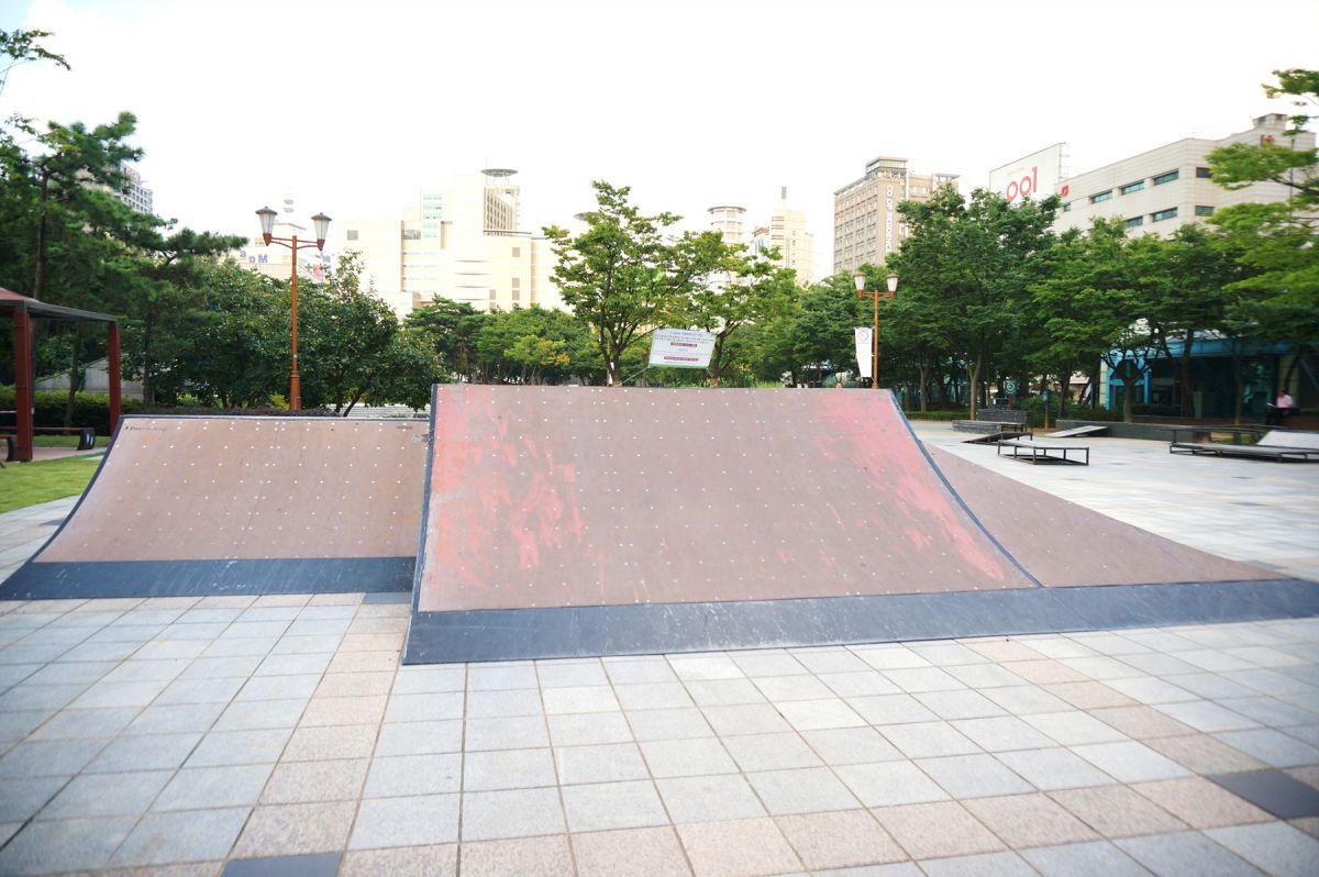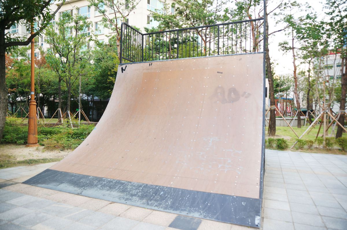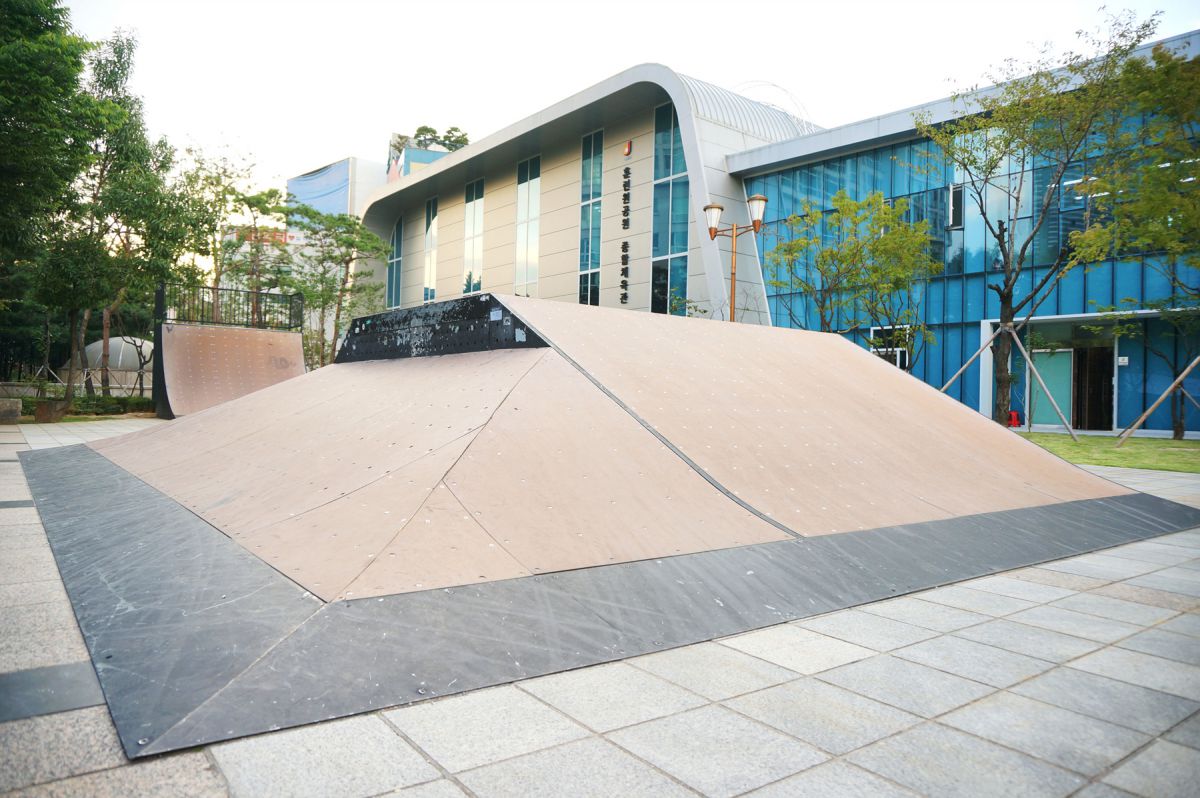공원 안에는 스케이트보드를 탈 수 있는 공간이 마련되어 있습니다.