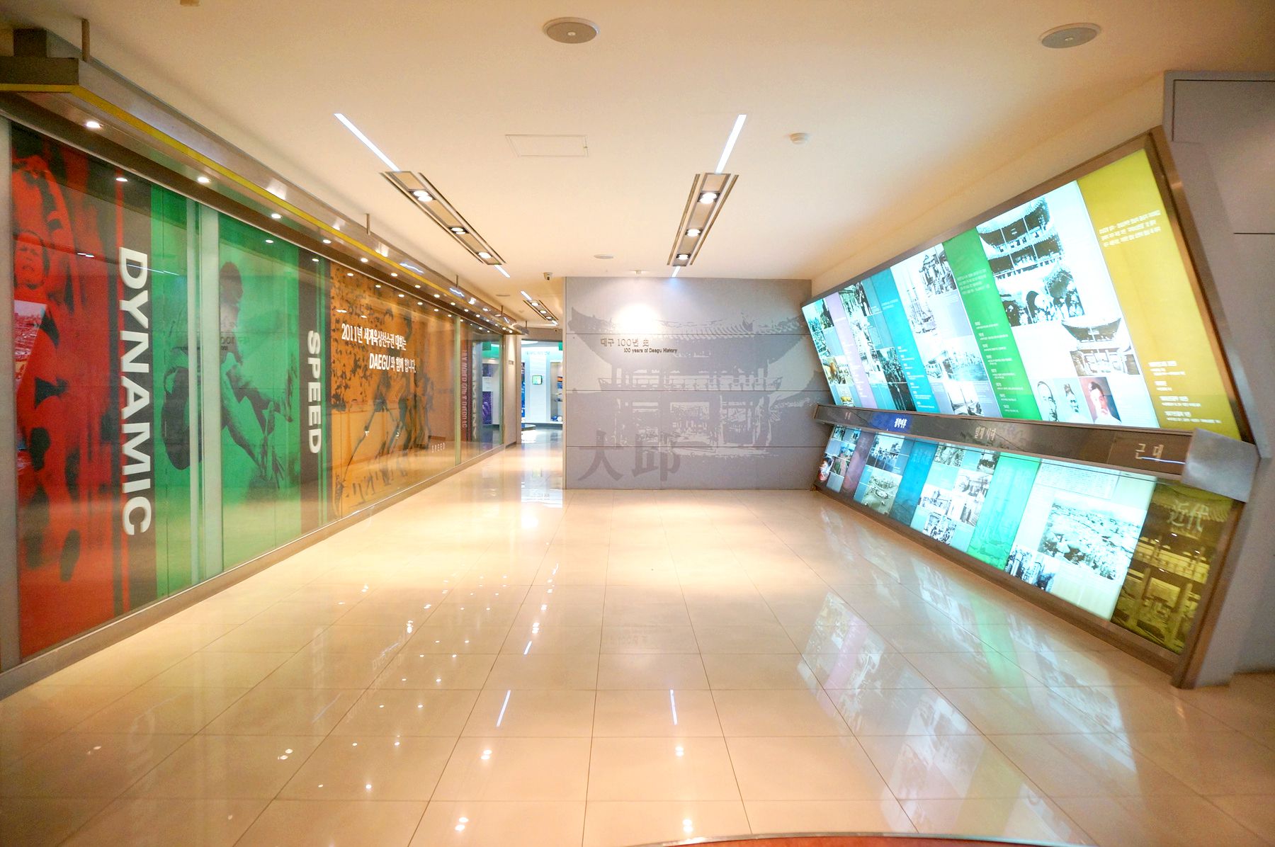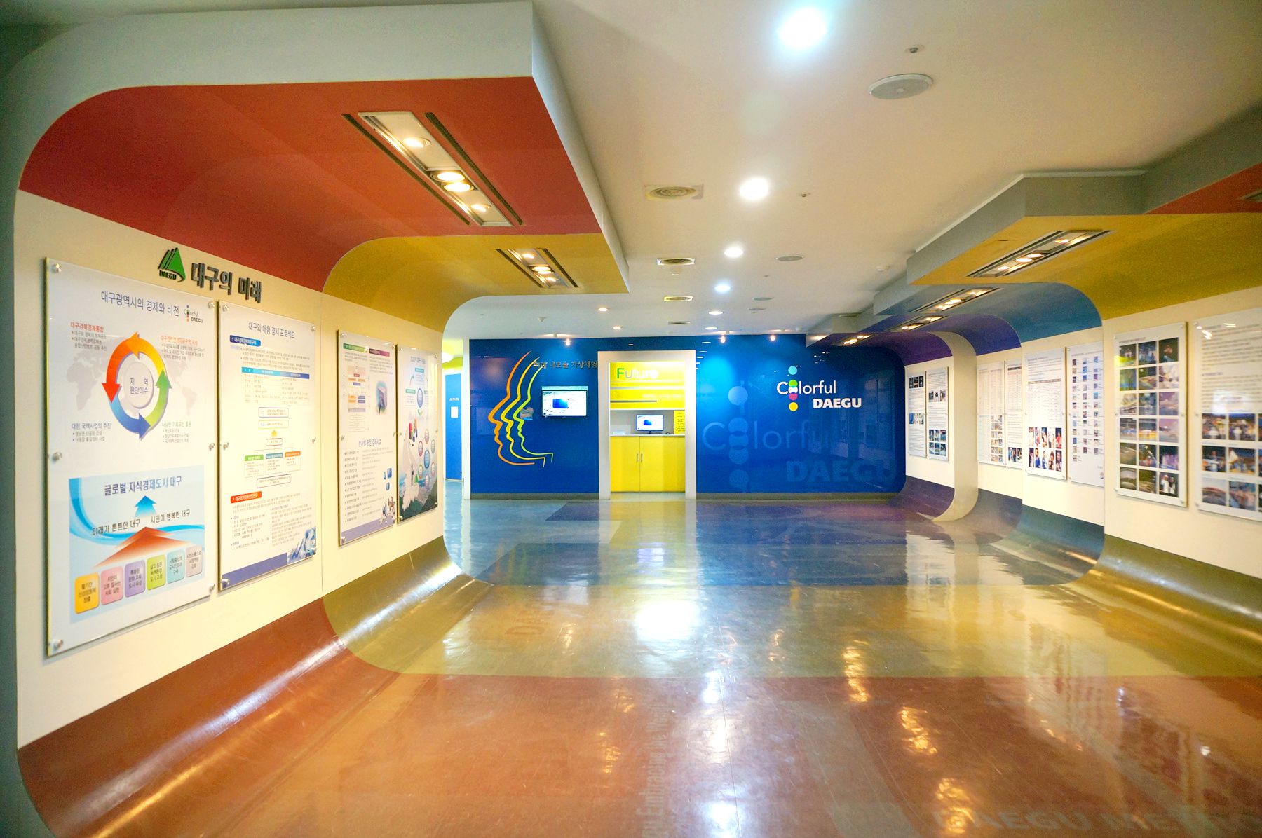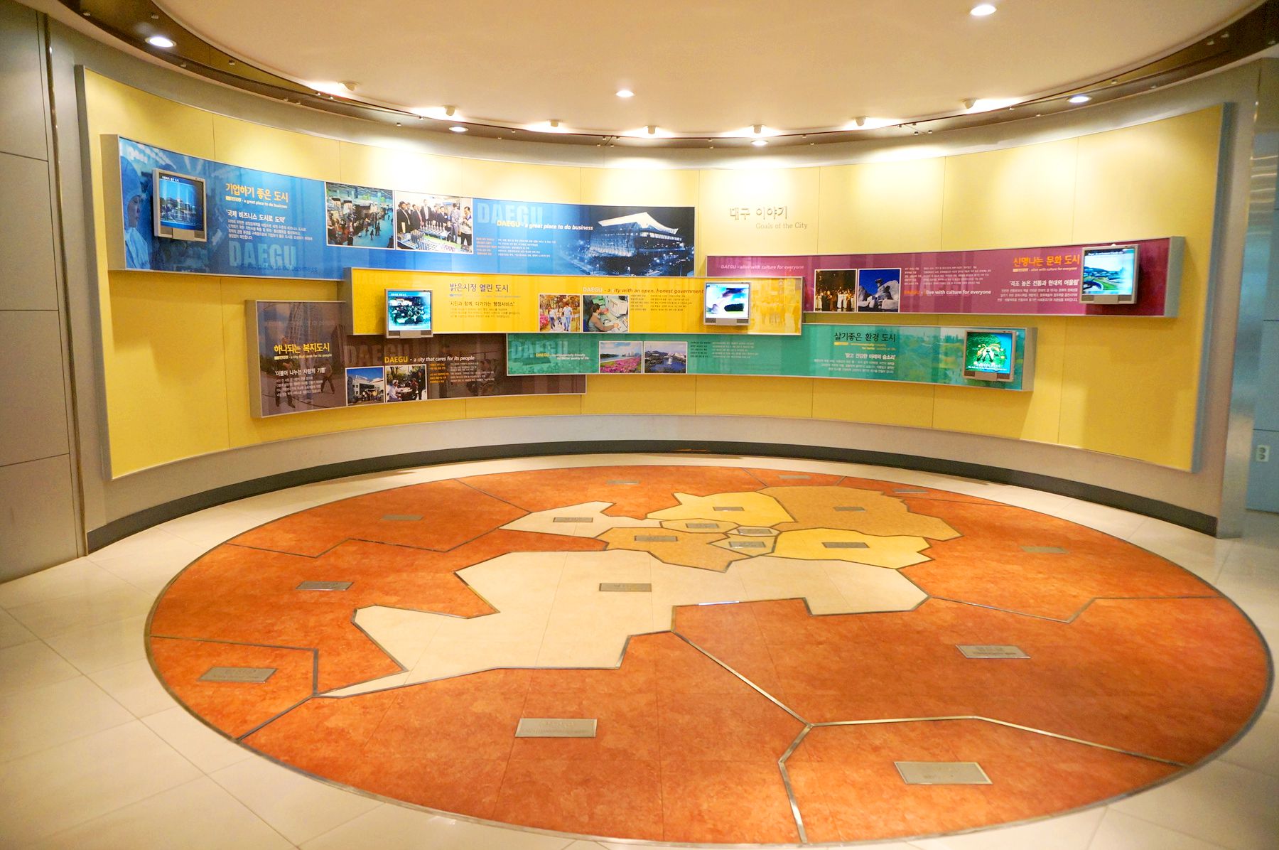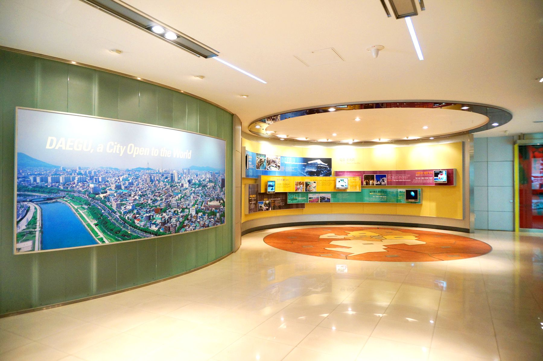 지상 1층의 대구이야기 코너에서는 원형의 전시공간으로 글로벌 지식경제 자유도시로 도약하는