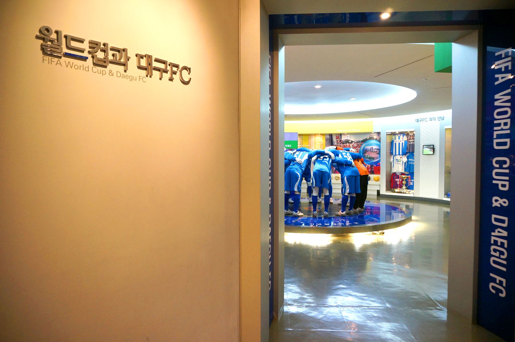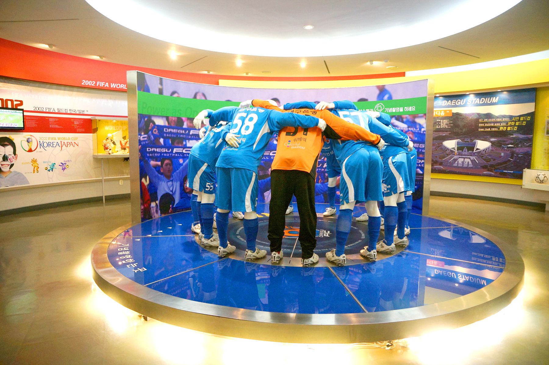 대표 선수단의 풋프린팅과 함께 우리나라 최초의 시민프로 축구단 대구 FC를 소개하고 있으며