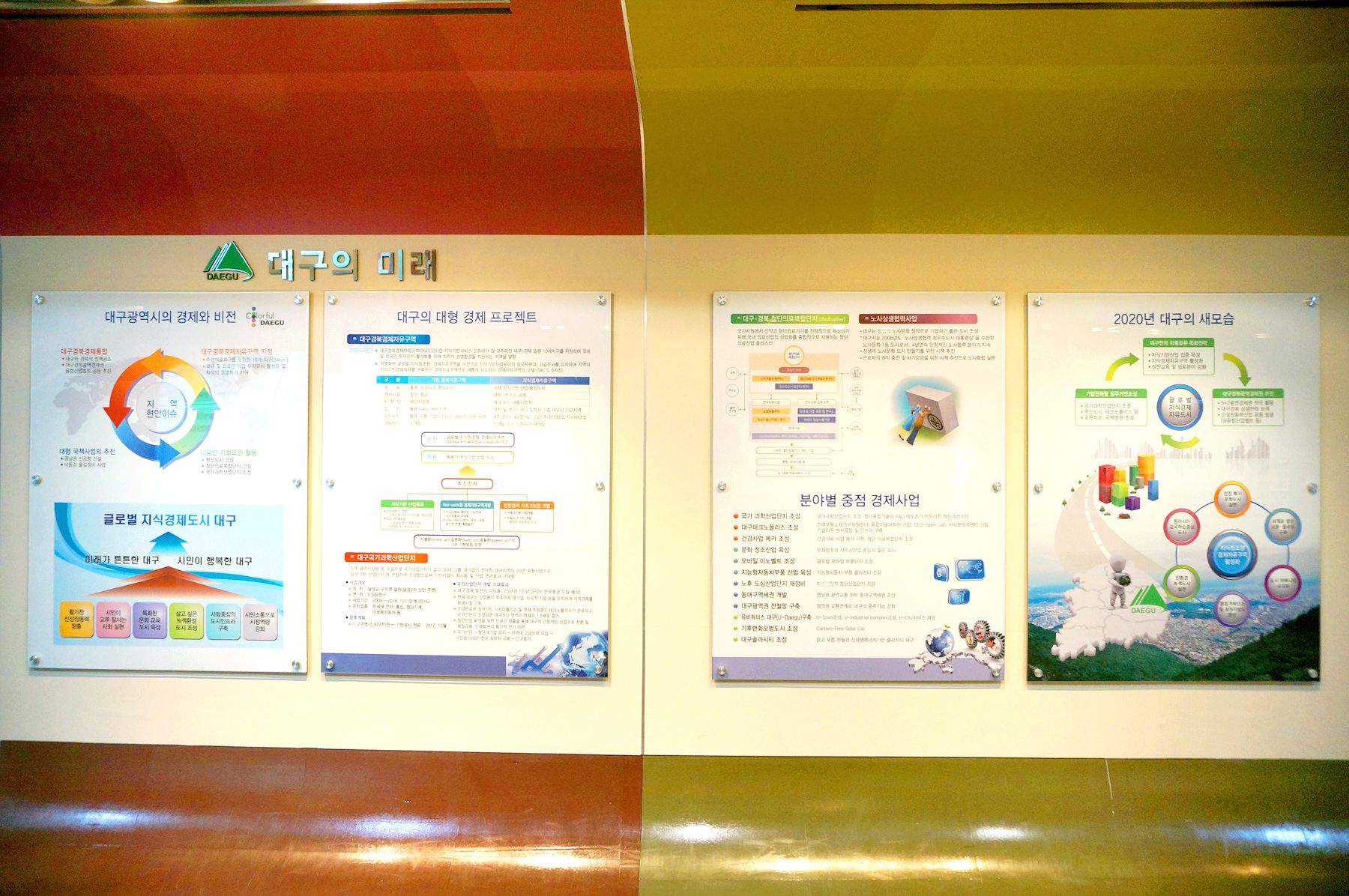 바닥에서부터 천장까지 연결된 입체구조물에는 대구시의 5대 성장 프로젝트와 대구의 미래 9대 프로젝트를