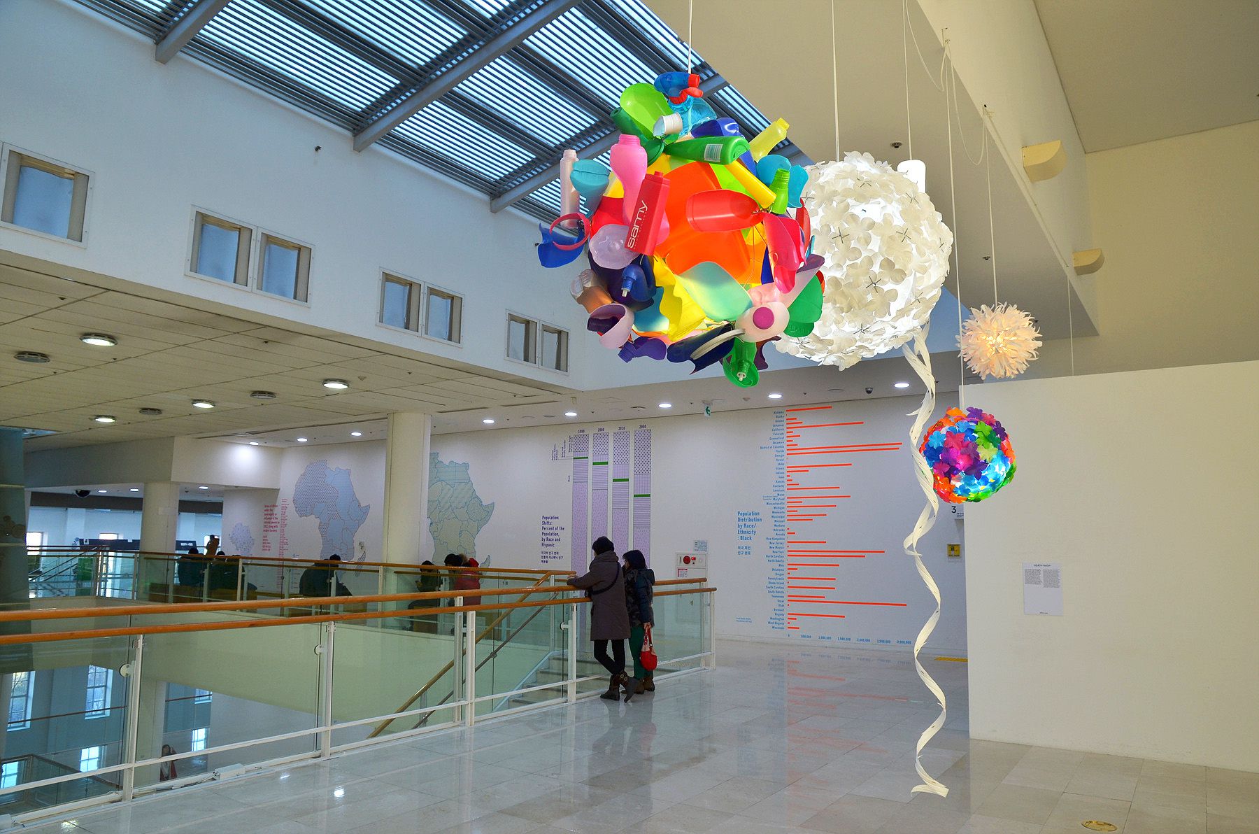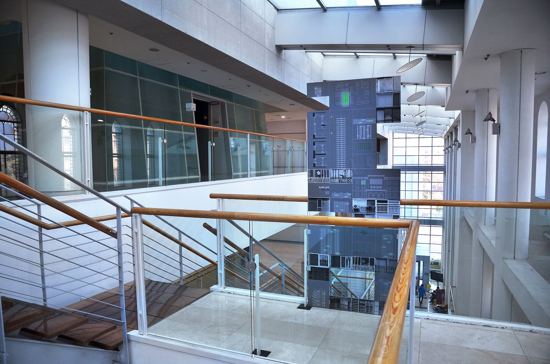 가운데가 뚫여 있어서 탁 트여있는 로비를 비롯해 전시관이 아닌 곳에서도 감상할 수 있는 작품들이 전시되어 있습니다.