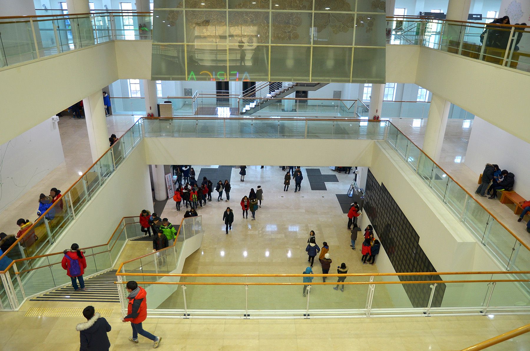 3층에서 내려다 본 미술관 입구의 모습입니다.