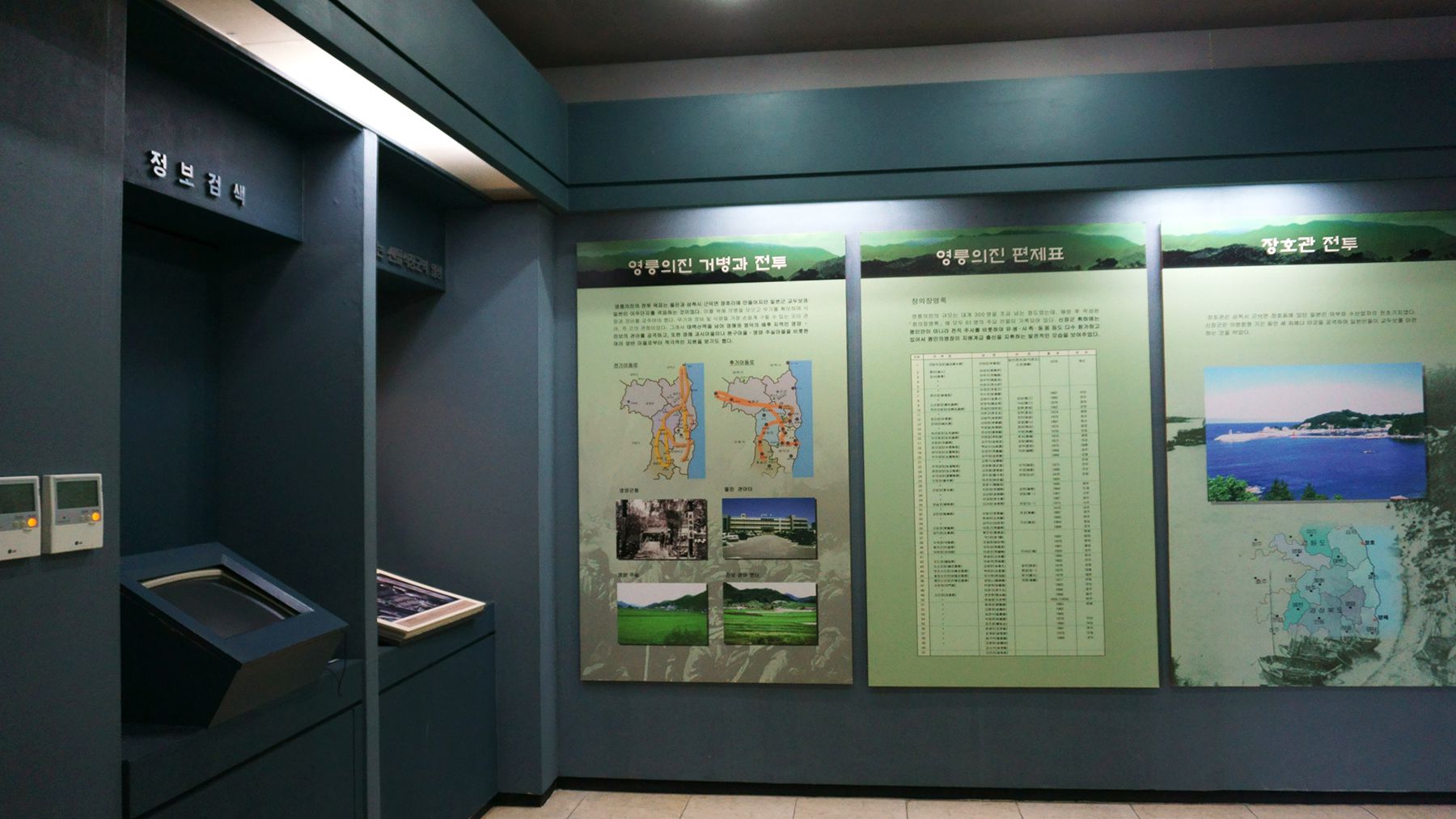 장도, 창검류 등의 유물이 전시가 되어 있습니다.