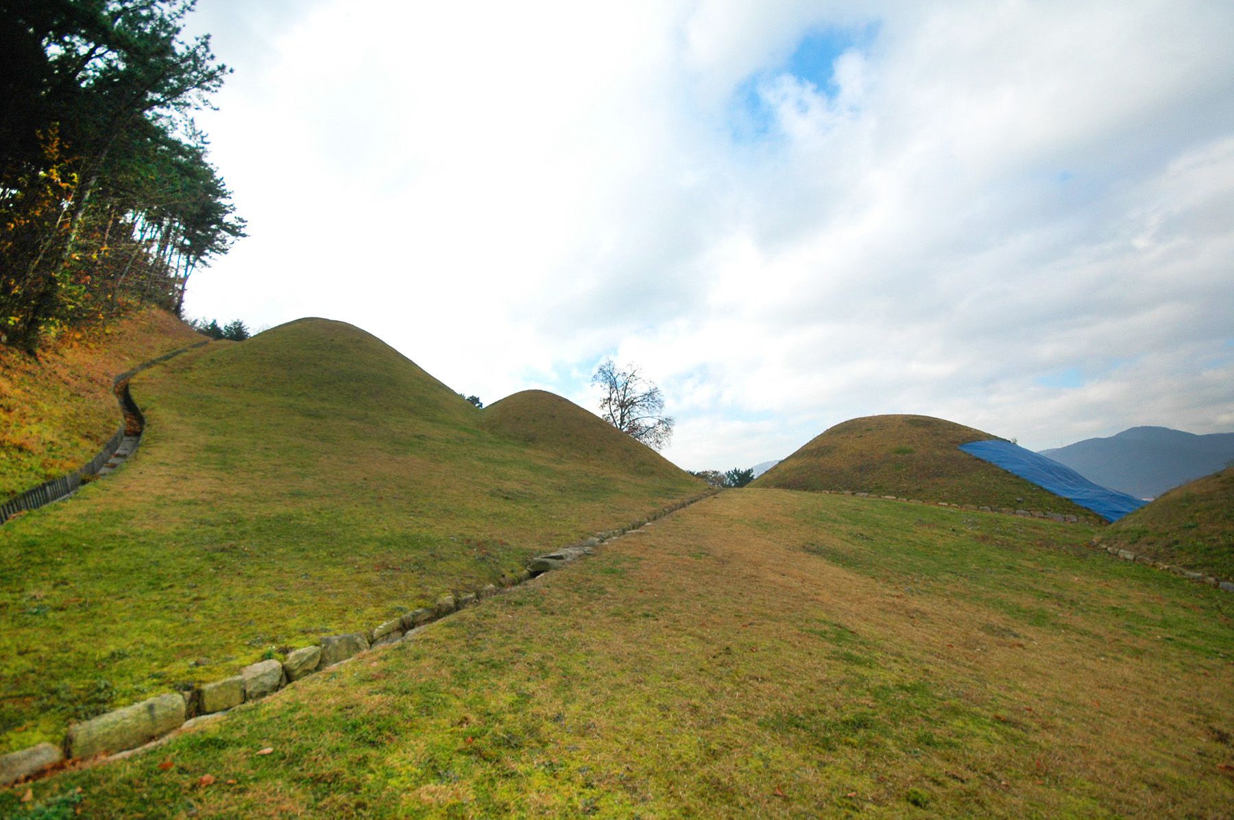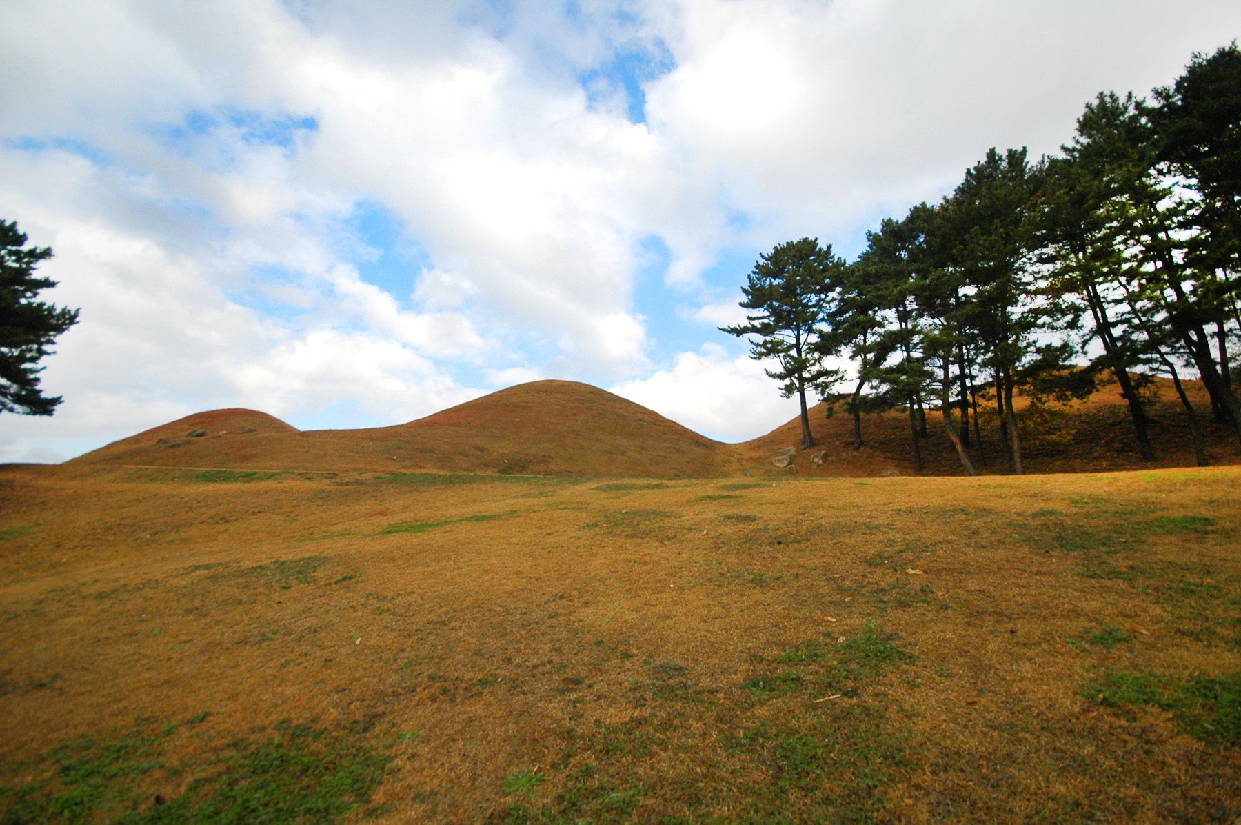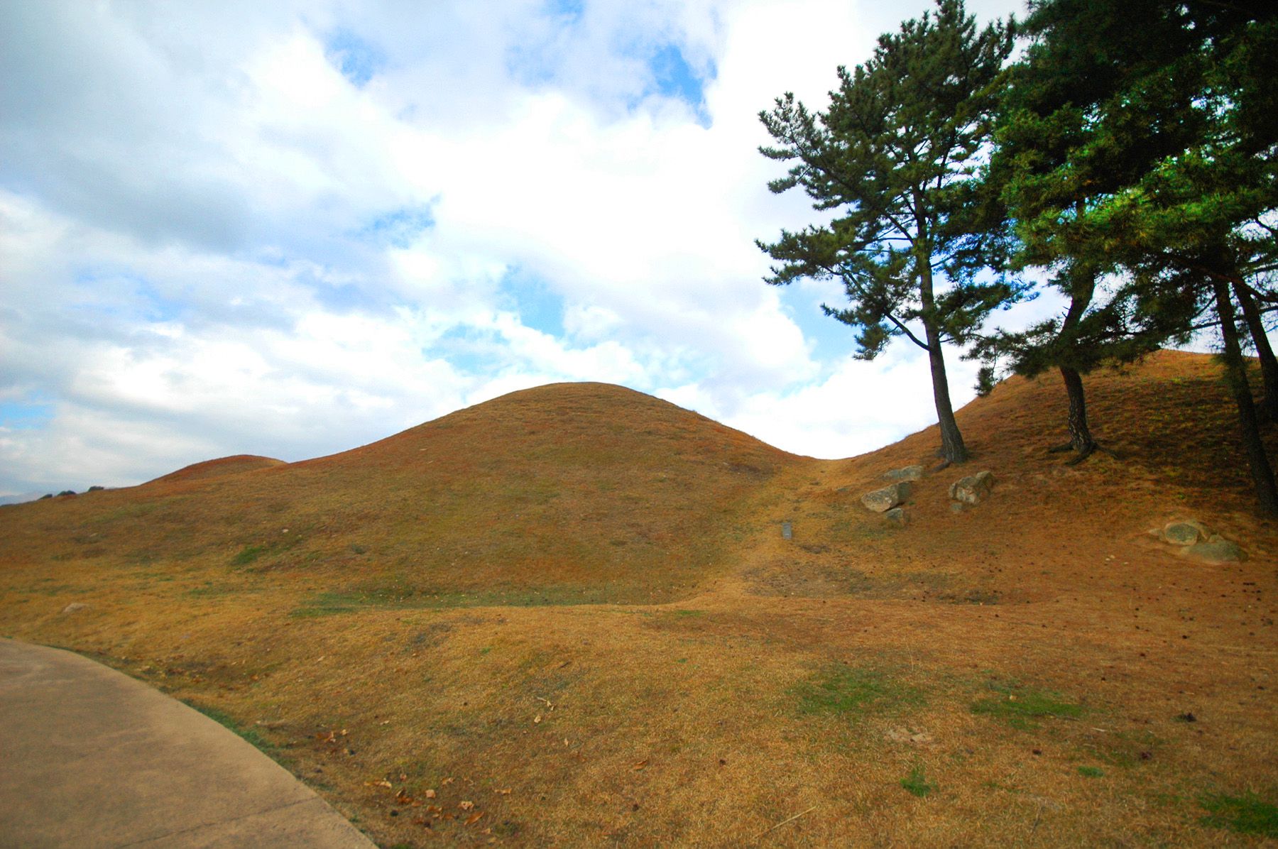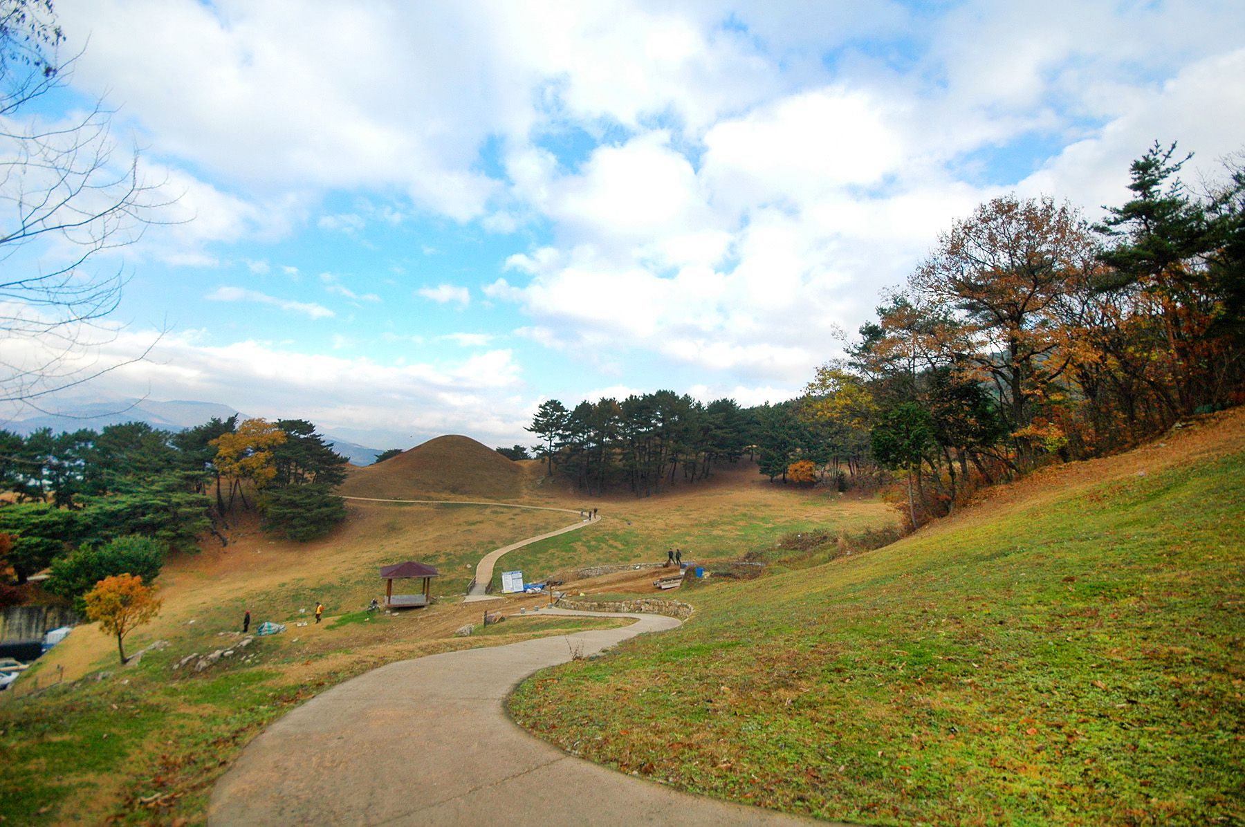 넓게 펼쳐진 한적한 고분군들 사이로 주변 풍경을 감상하며,