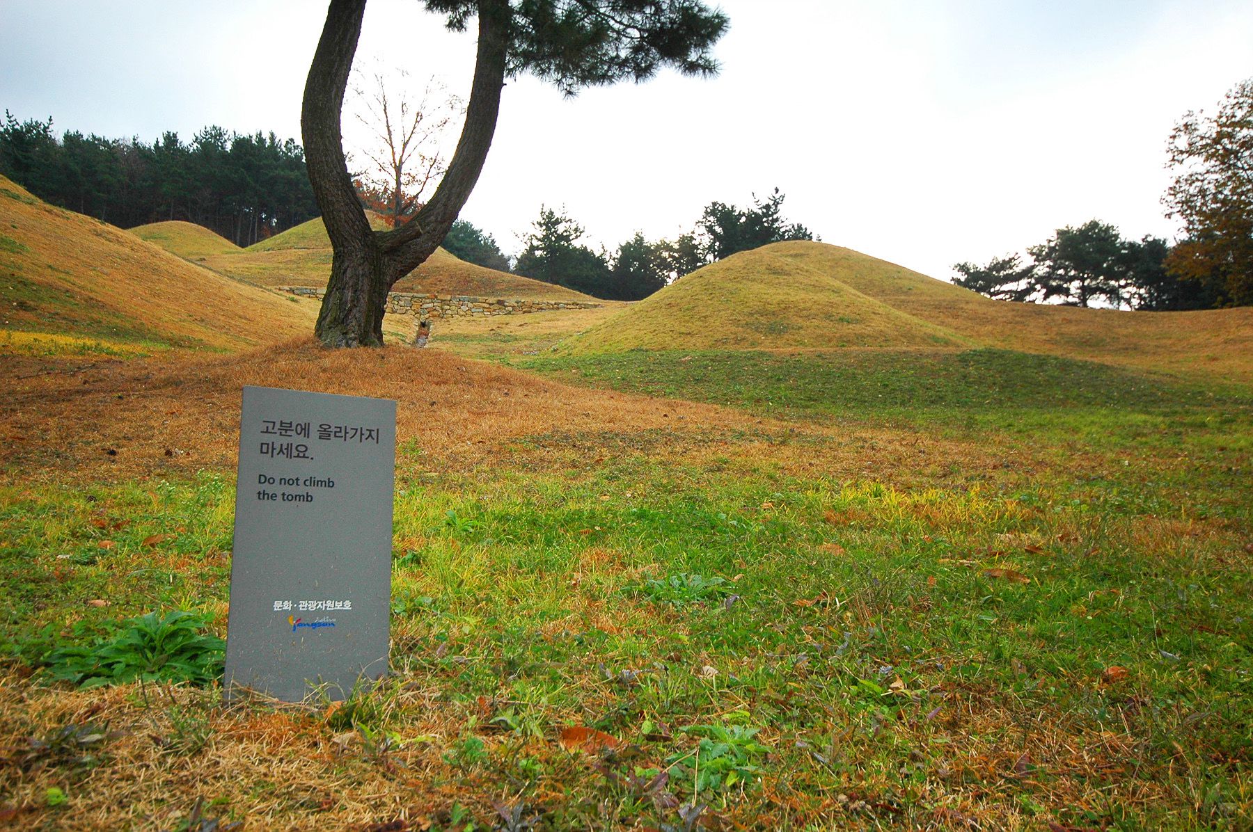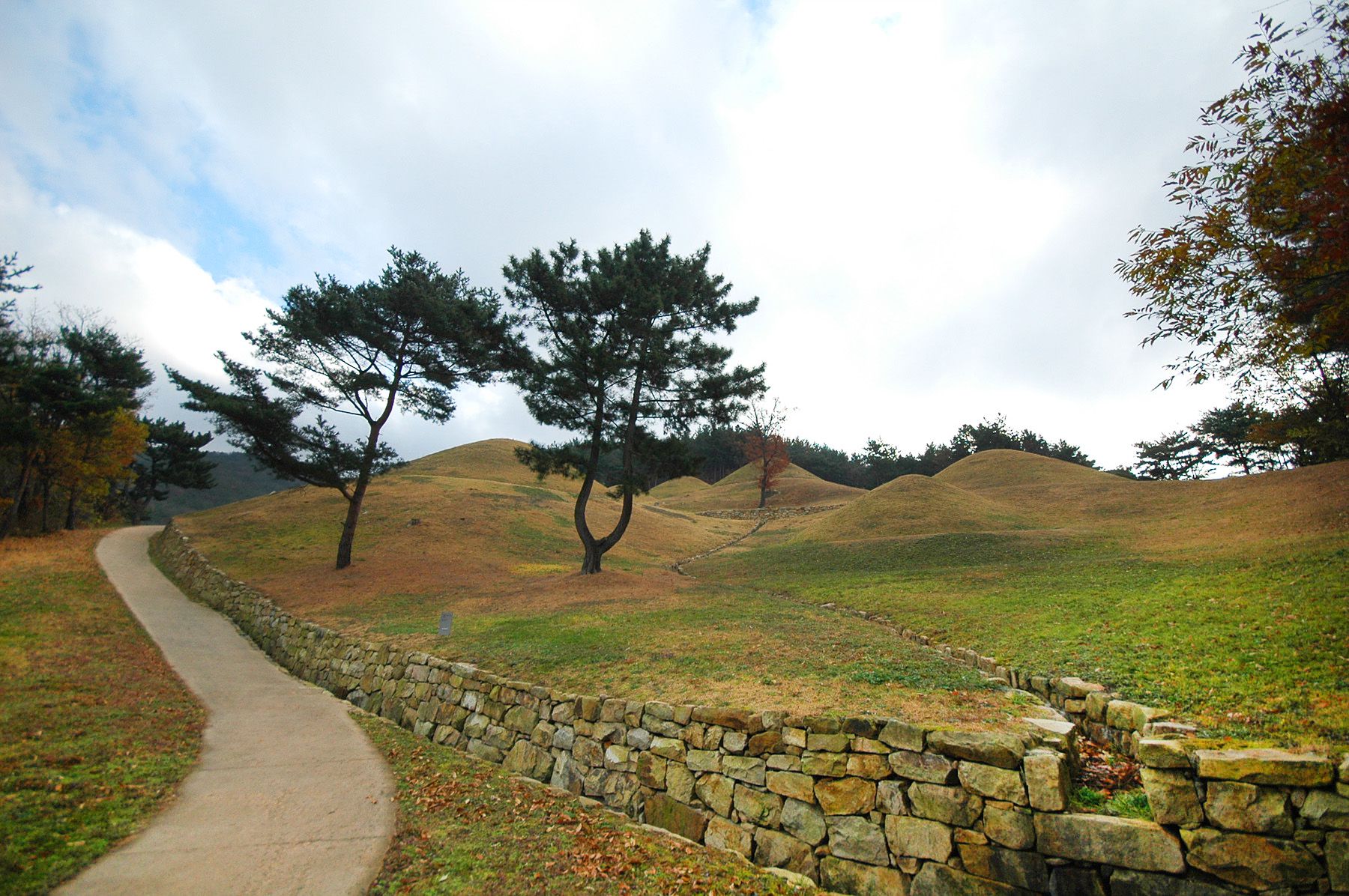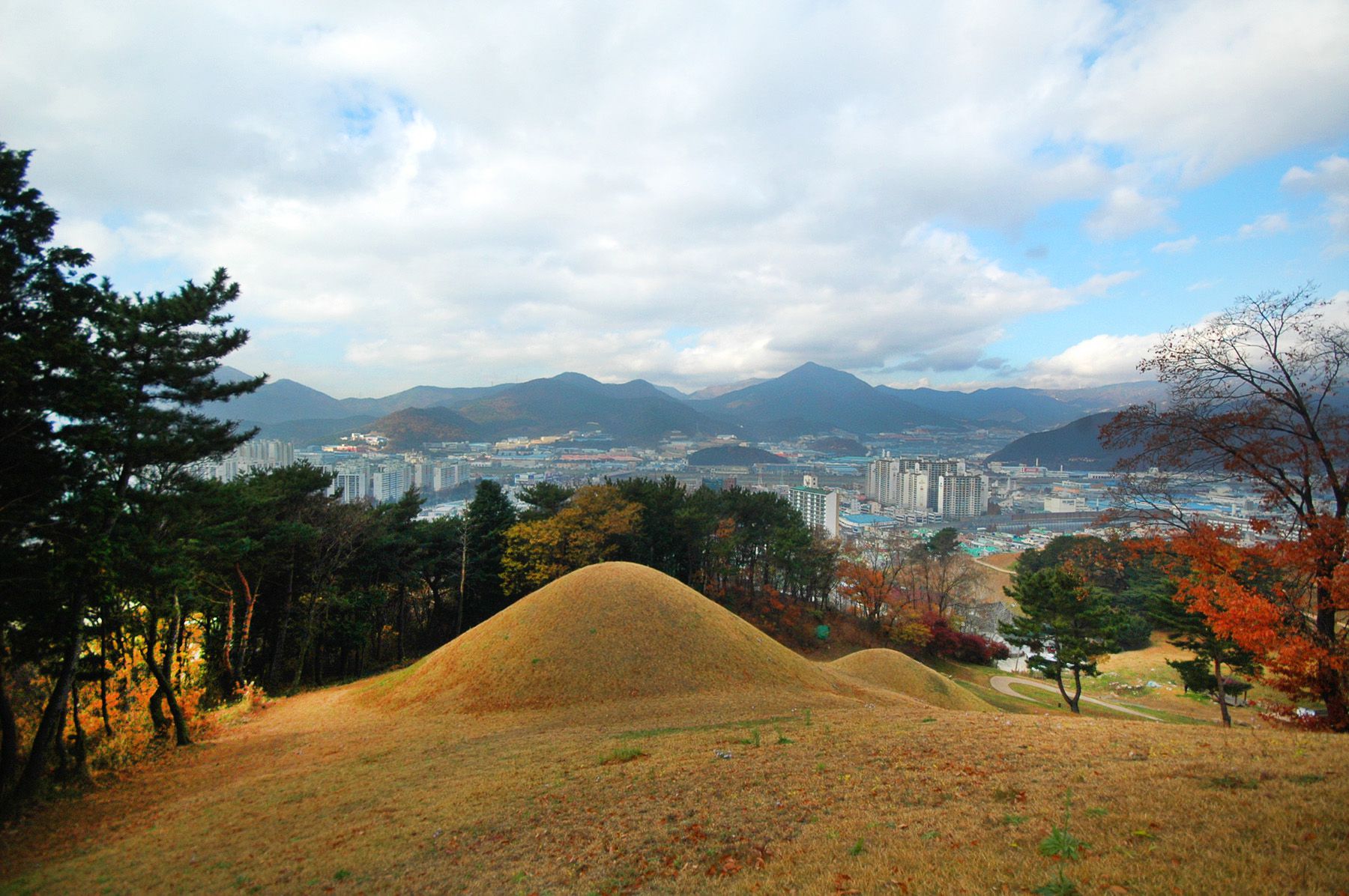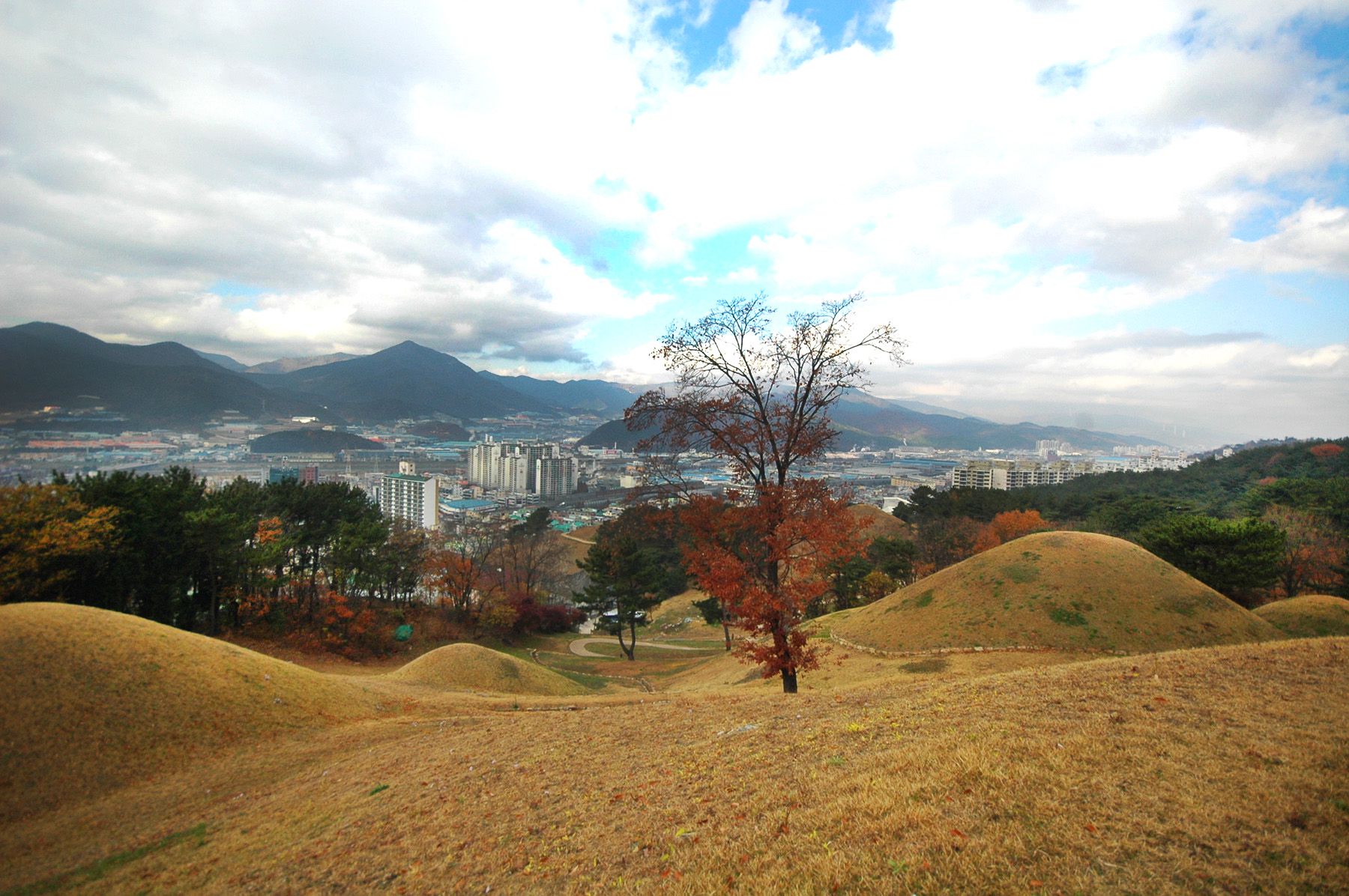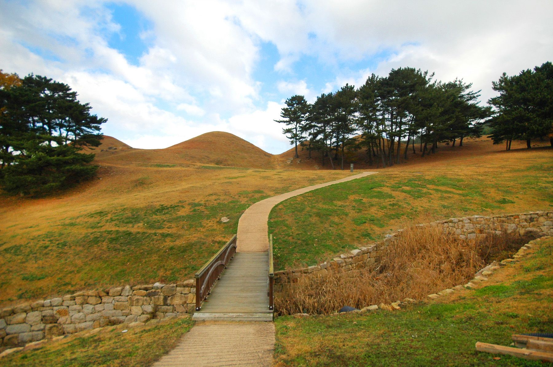 넓게 펼쳐진 한적한 고분군들 사이로 주변 풍경을 감상하며,