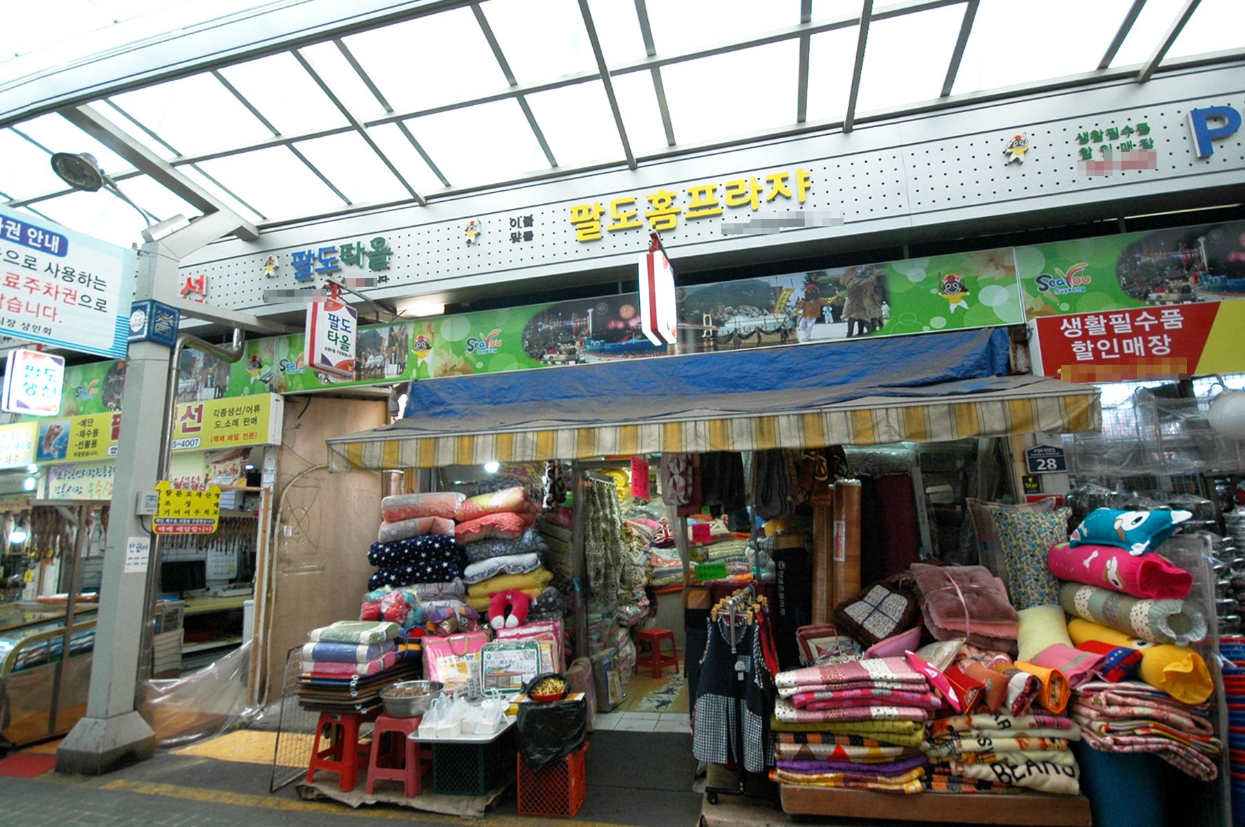 2006년 전통시장으로 인정된 팔도 시장은 상가 주택 복합형 시장으로 점포 수는