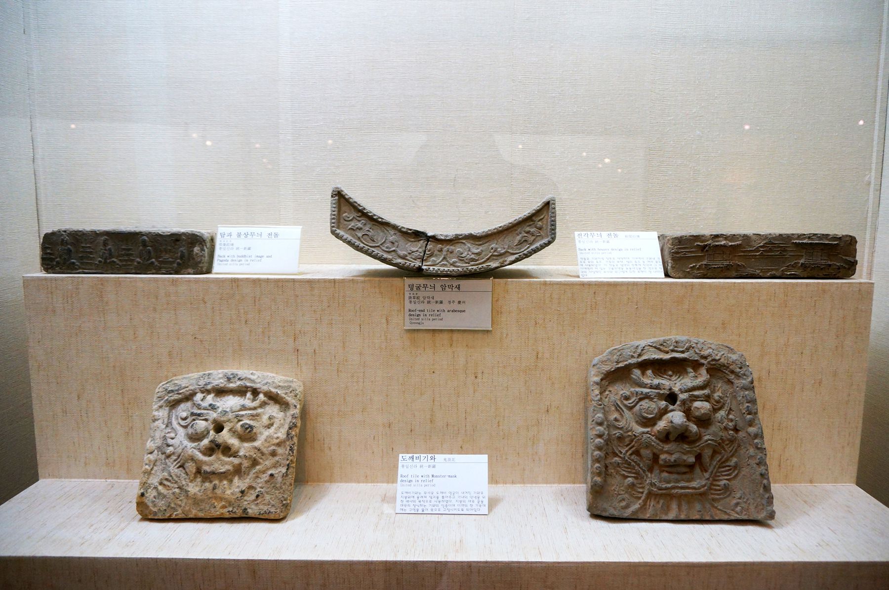 적색마연토기, 붉은 간토기, 용면문기와, 암막새류, 다양한 고배류 등