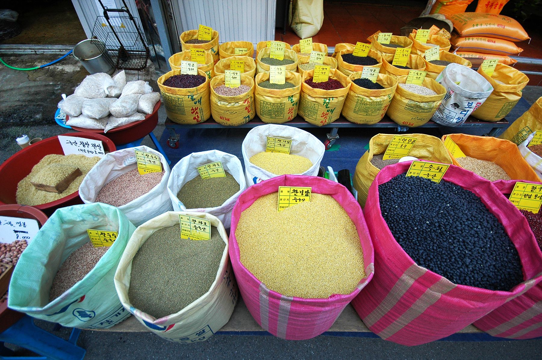 우리 식탁에 자주 오르는 곡식과 싱싱한 채소들도 저렴한 가격에 구입할 수 있습니다.