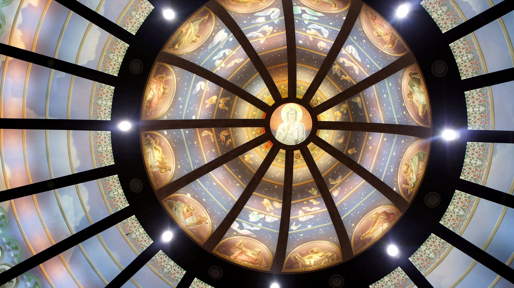가장 인상 깊은 곳은 성전 내부의 돔으로 그리스도와 12사도의 성화로 장식되어 있습니다.