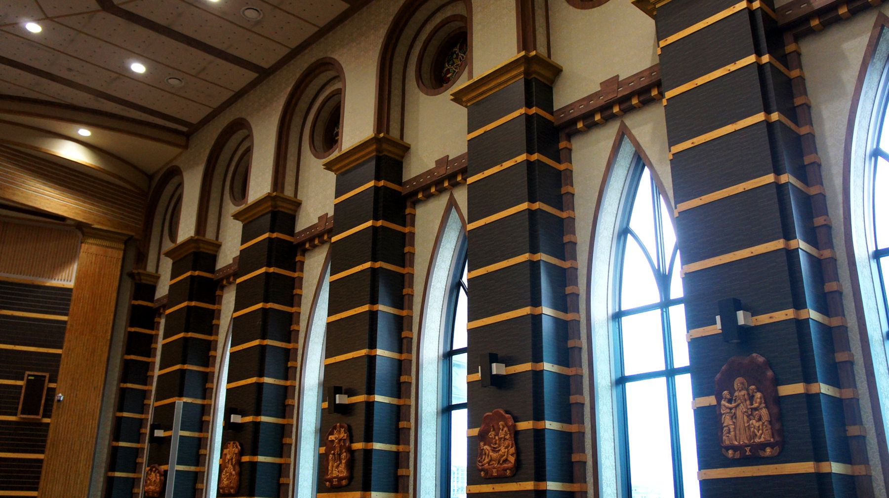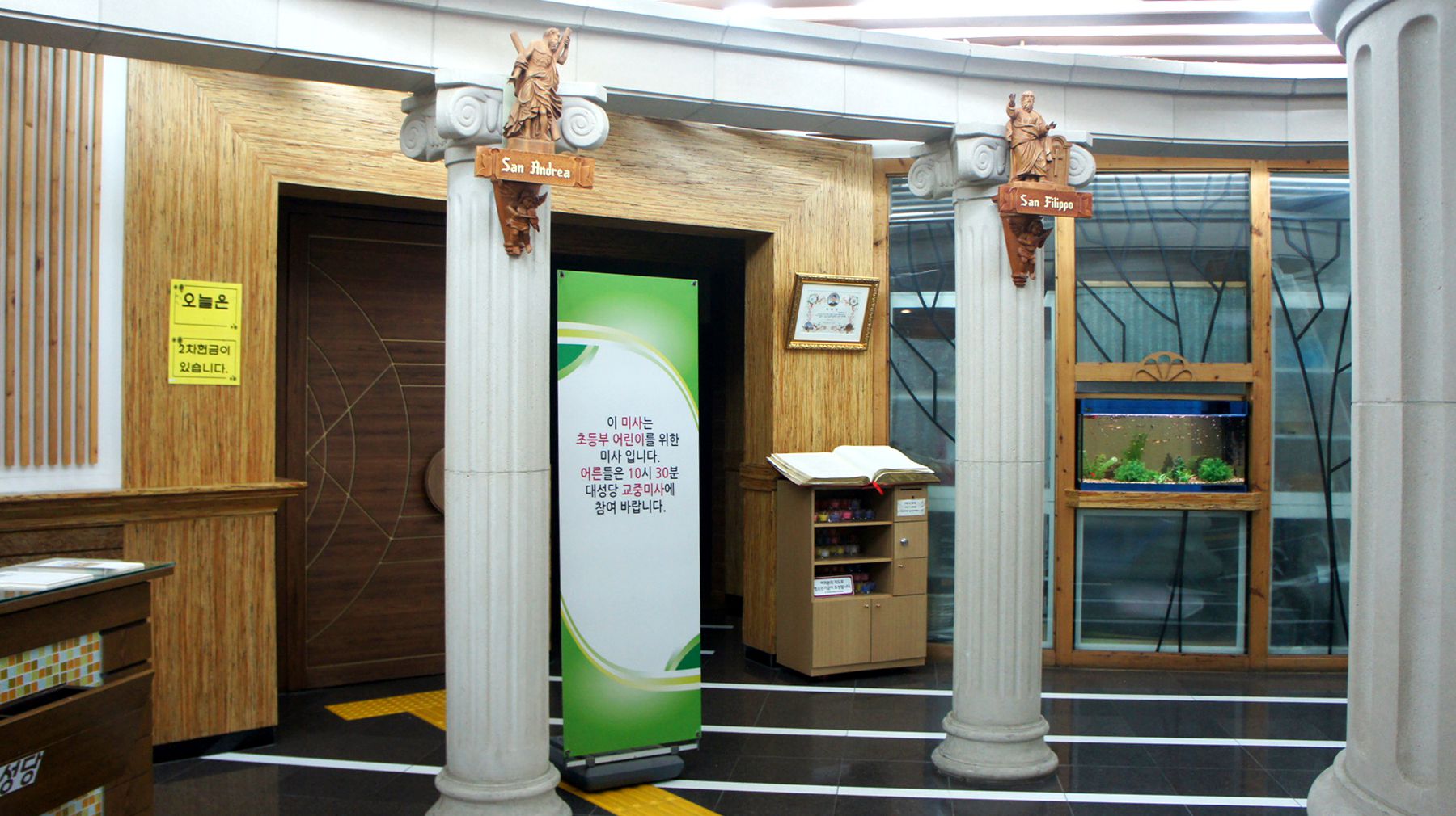 로비에 각 기둥 위에는 12명의 사도상이 조각으로 새겨져 있어 조용히 묵상하기 좋은 곳입니다.