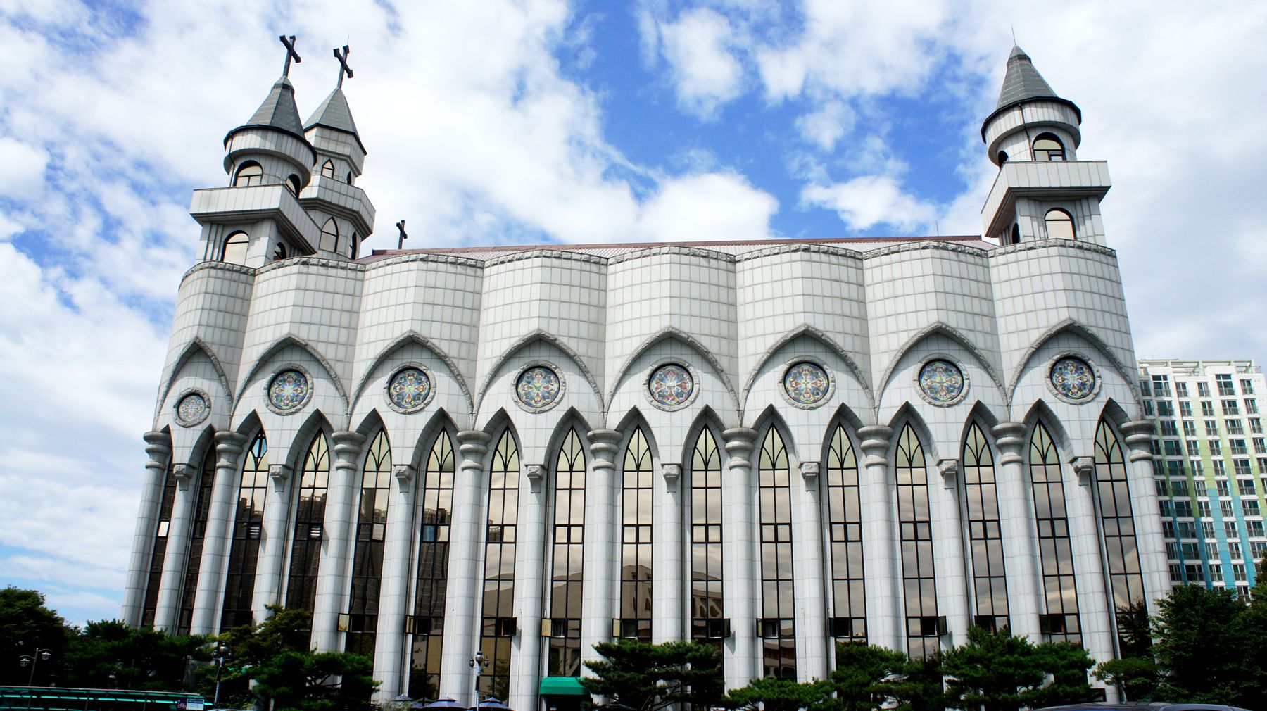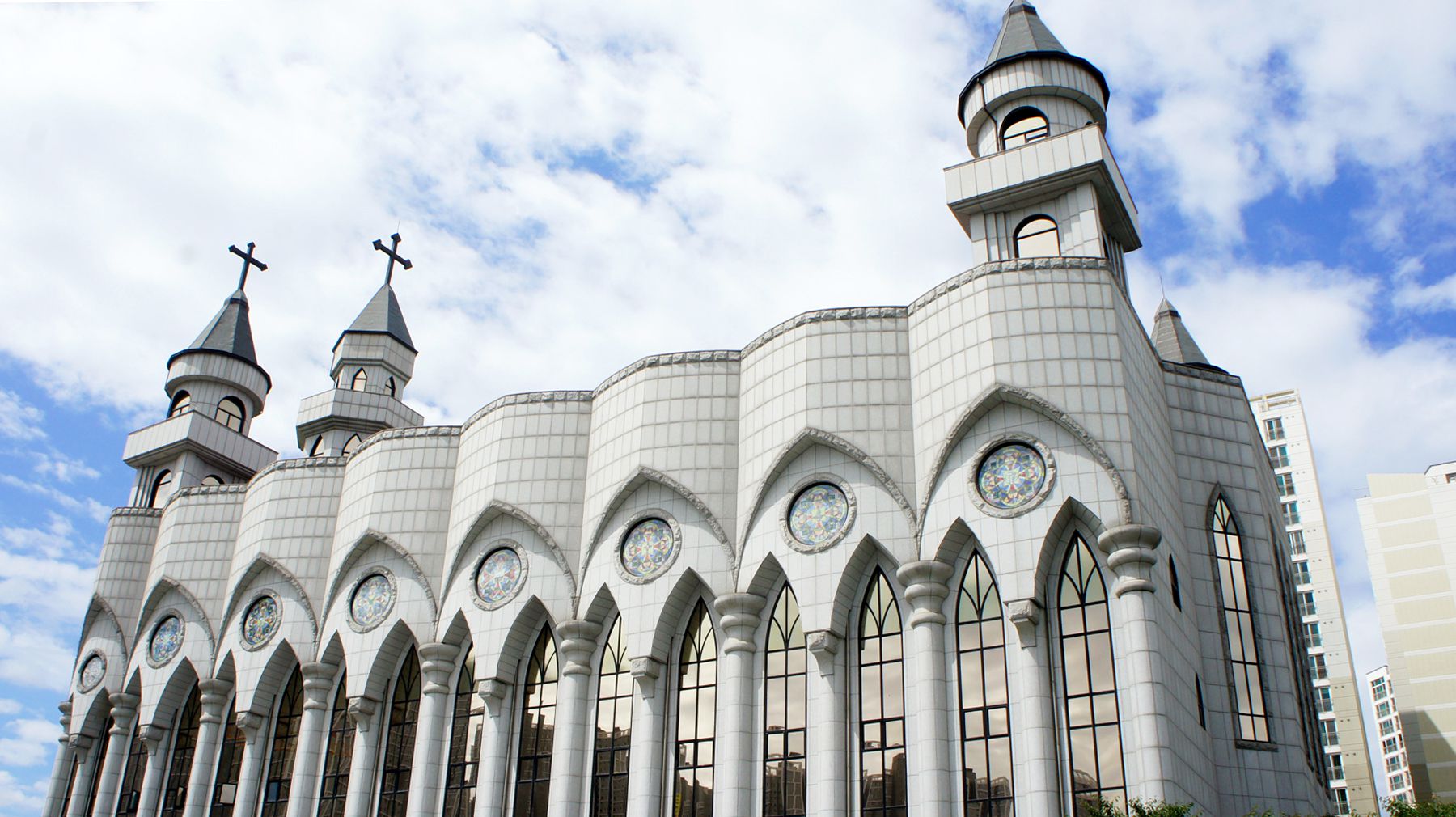 깨끗하고 간결한 이미지의 화강암을 이용한 외관 덕분에 더 빛을 발하는 성당입니다.