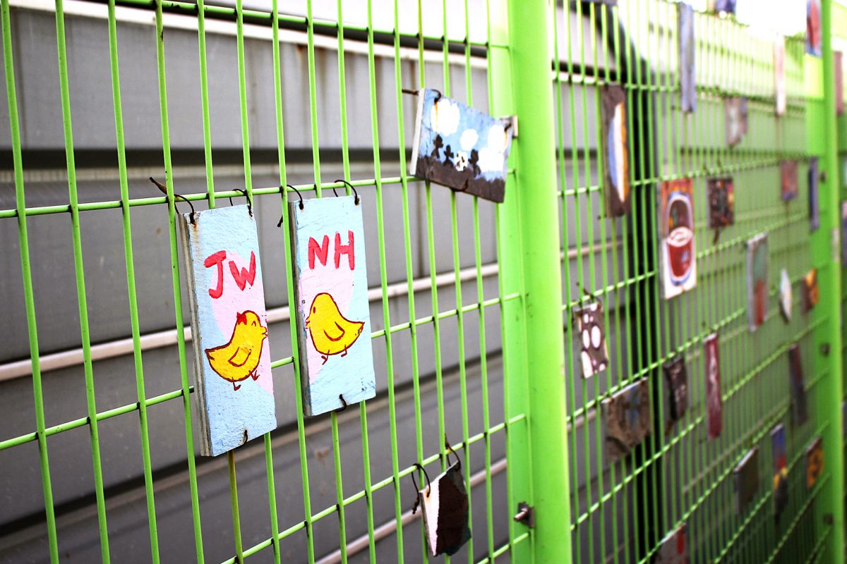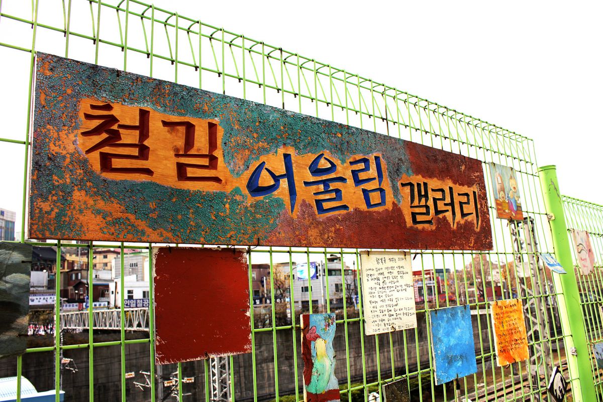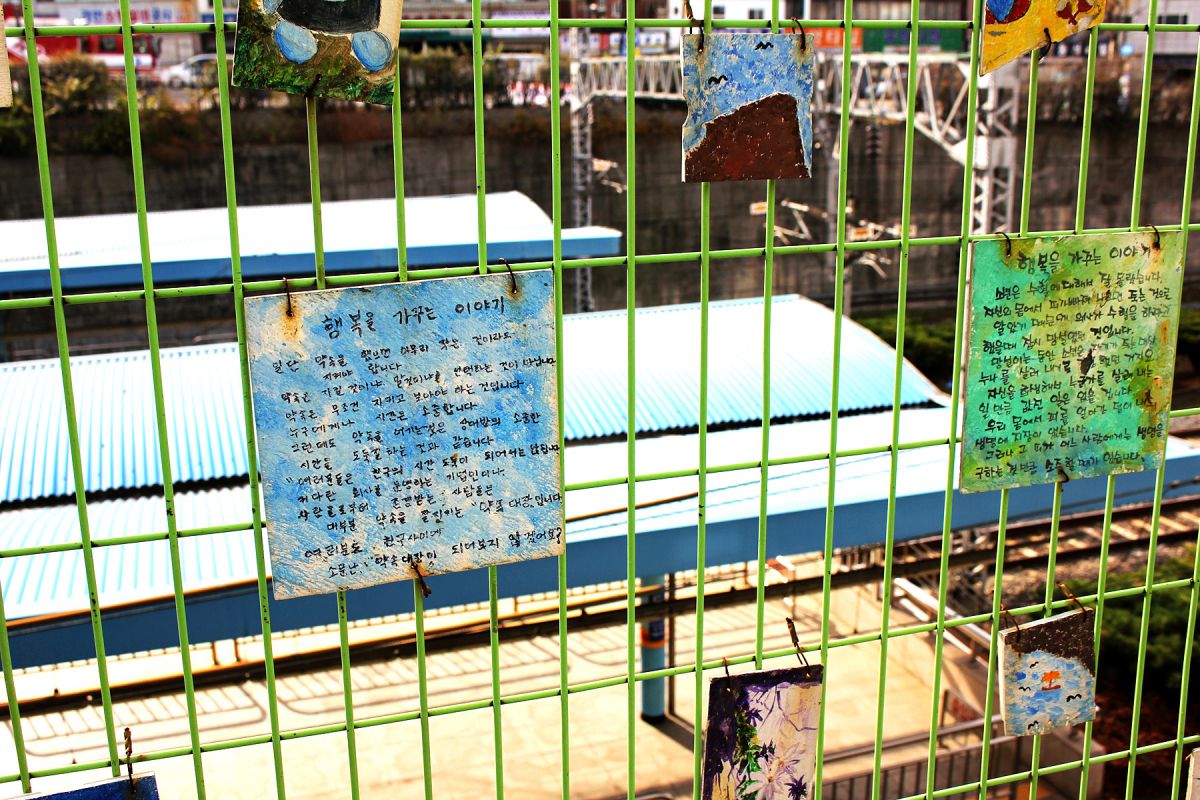 철길 펜스에 걸려있는 아이들이 그린 다양한 그림을 둘러볼 수 있는 곳으로