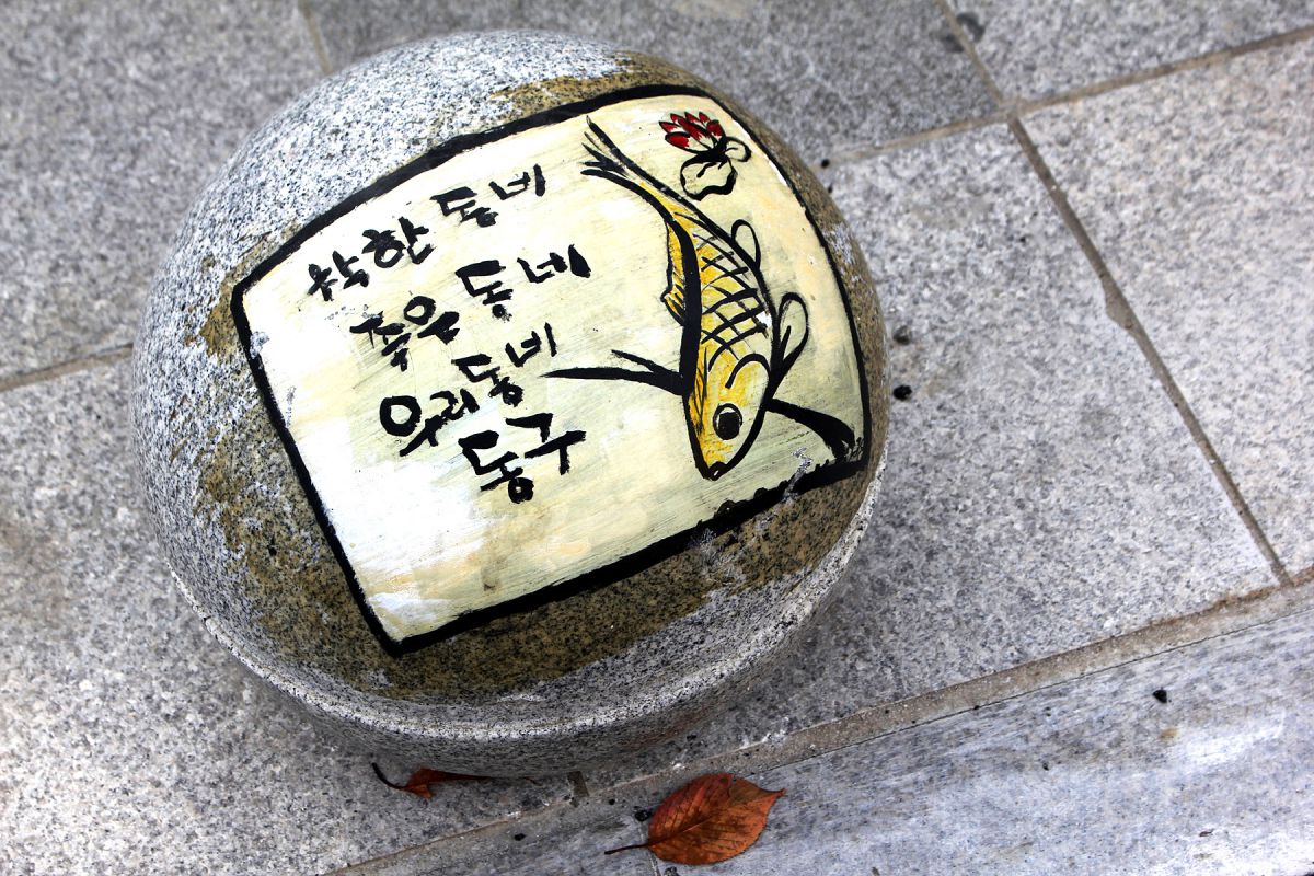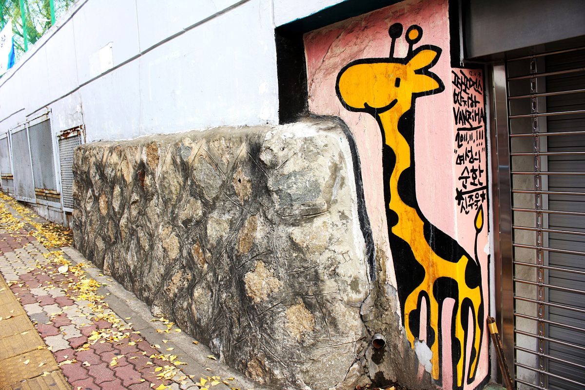돌에 그려진 그림들과 벽화가 나란히 그려져 있어 걸음을 멈추게 하는 곳입니다.