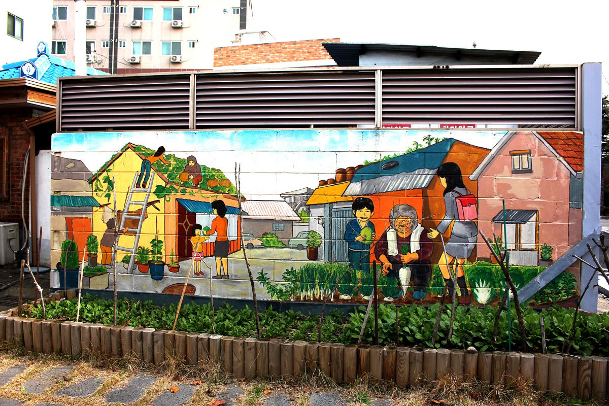 텃밭과 잘 어울리는 벽화는 한적한 마을 분위기가 제대로 느낄 수 있습니다.