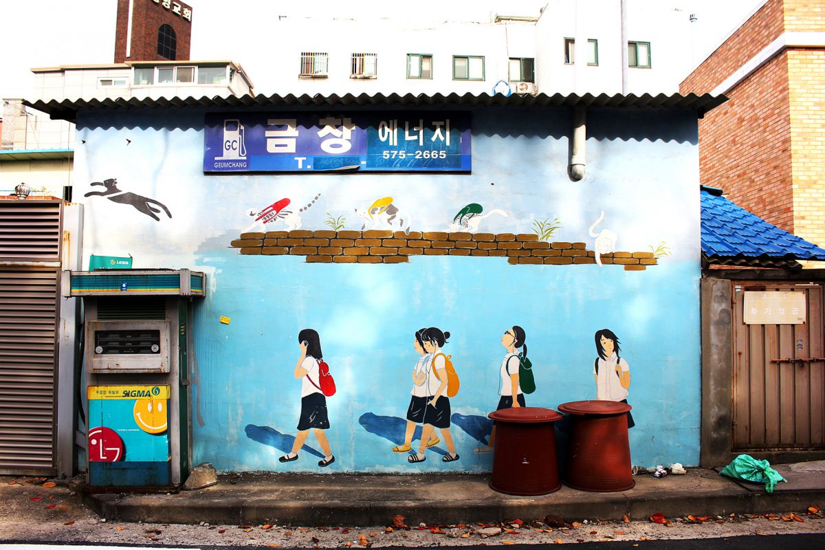 벽화 앞을 지나는 어른들도 잠시 동안 동심으로 돌아간 기분을 느낄 수 있는 곳입니다.