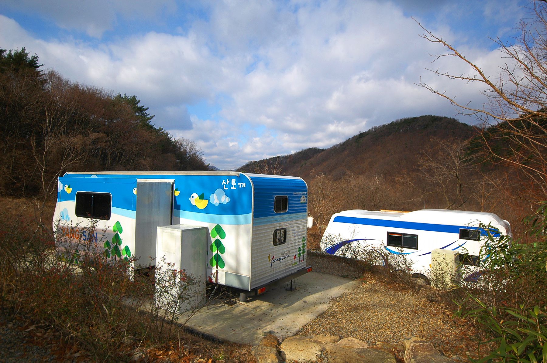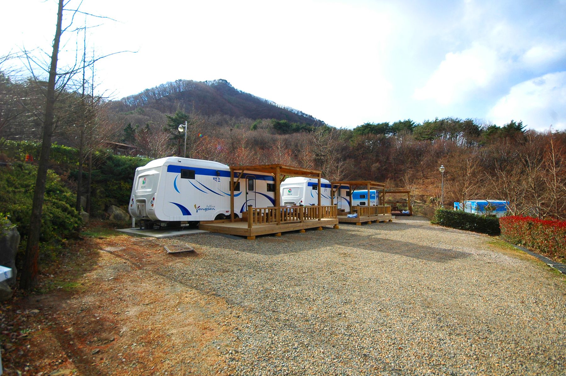 대운산의 아름다운 전경과 조화를 이루고 있는 카라반은
