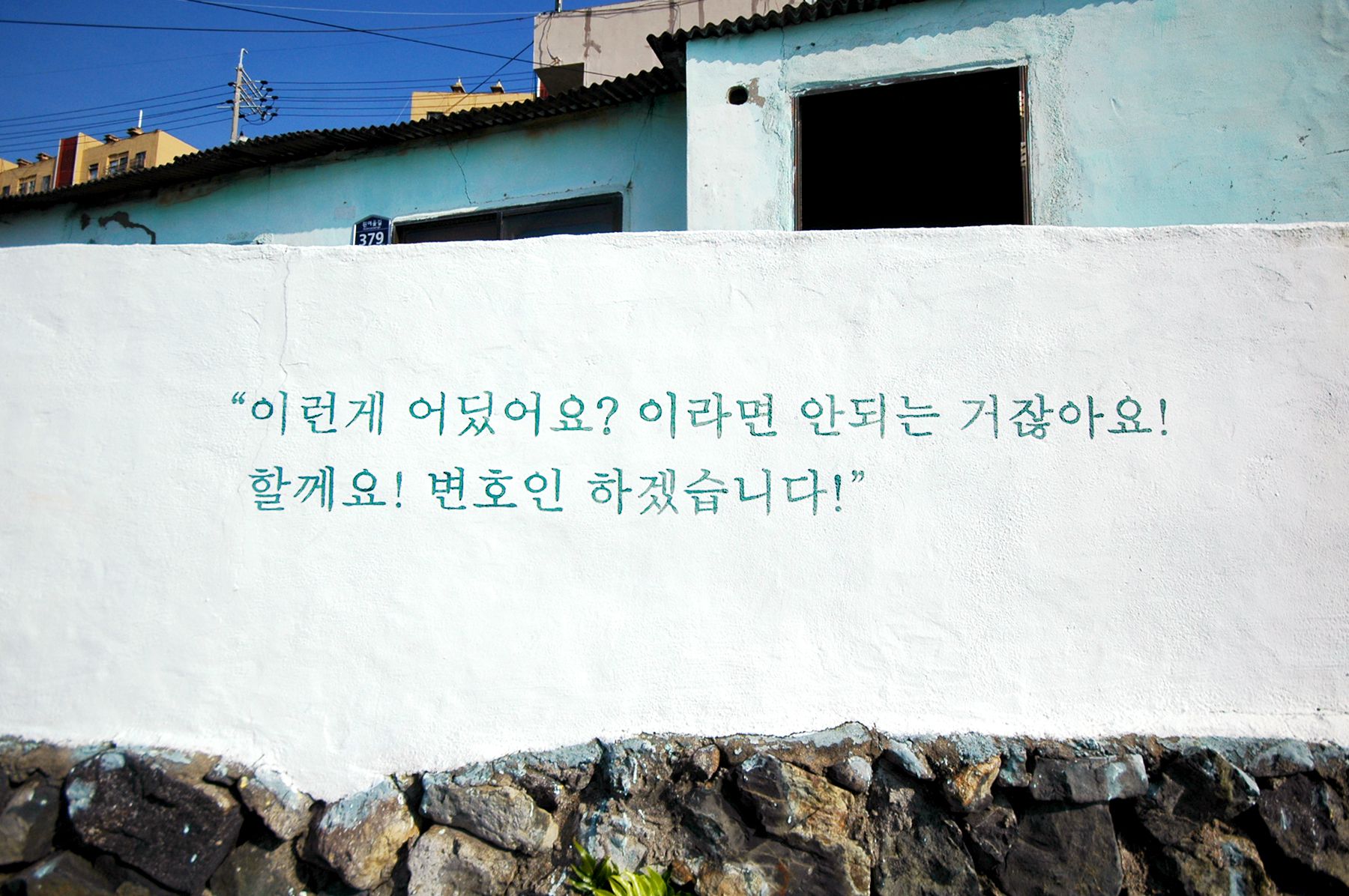 영화 '변호인'에서 나온 집으로, 영화 속 대사를 벽에 새겨 놓았는데요,