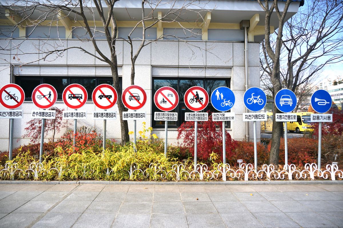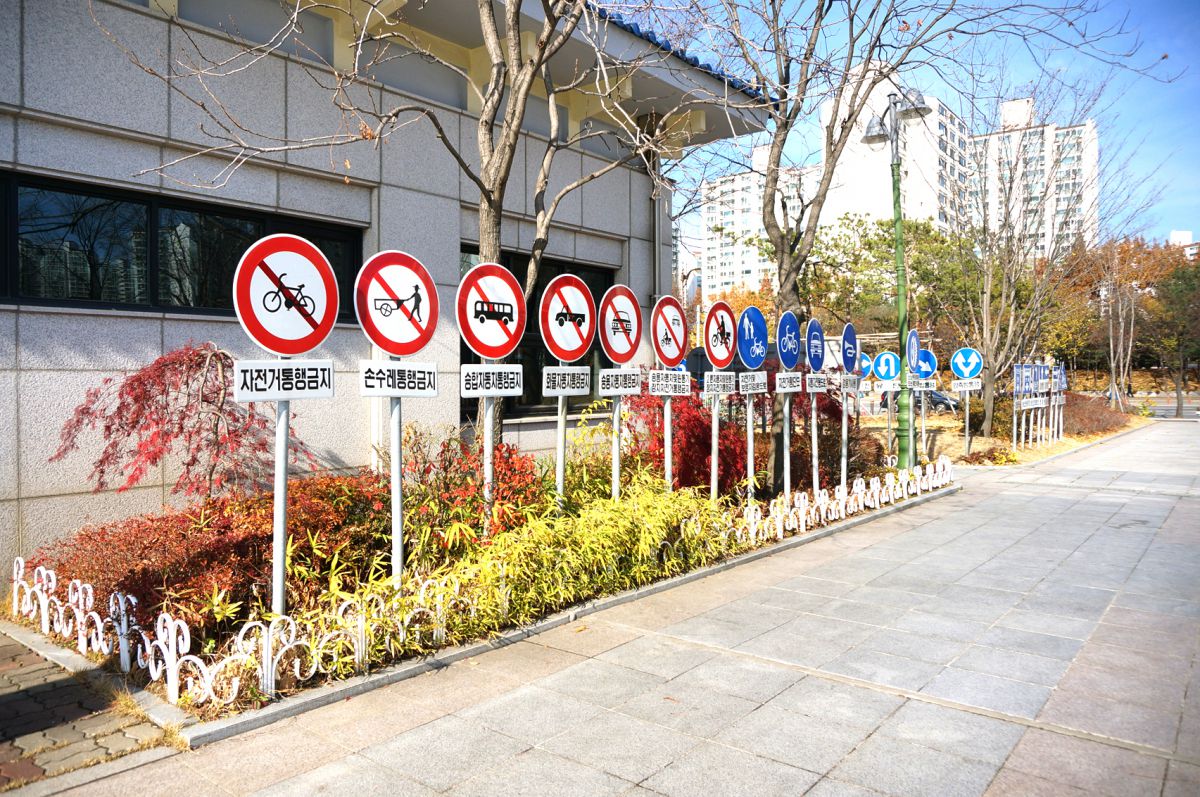 입구에 들어서면 우리 생활에 사용되는 다양한 교통 표지판을 한번에 만나볼 수 있는데요,