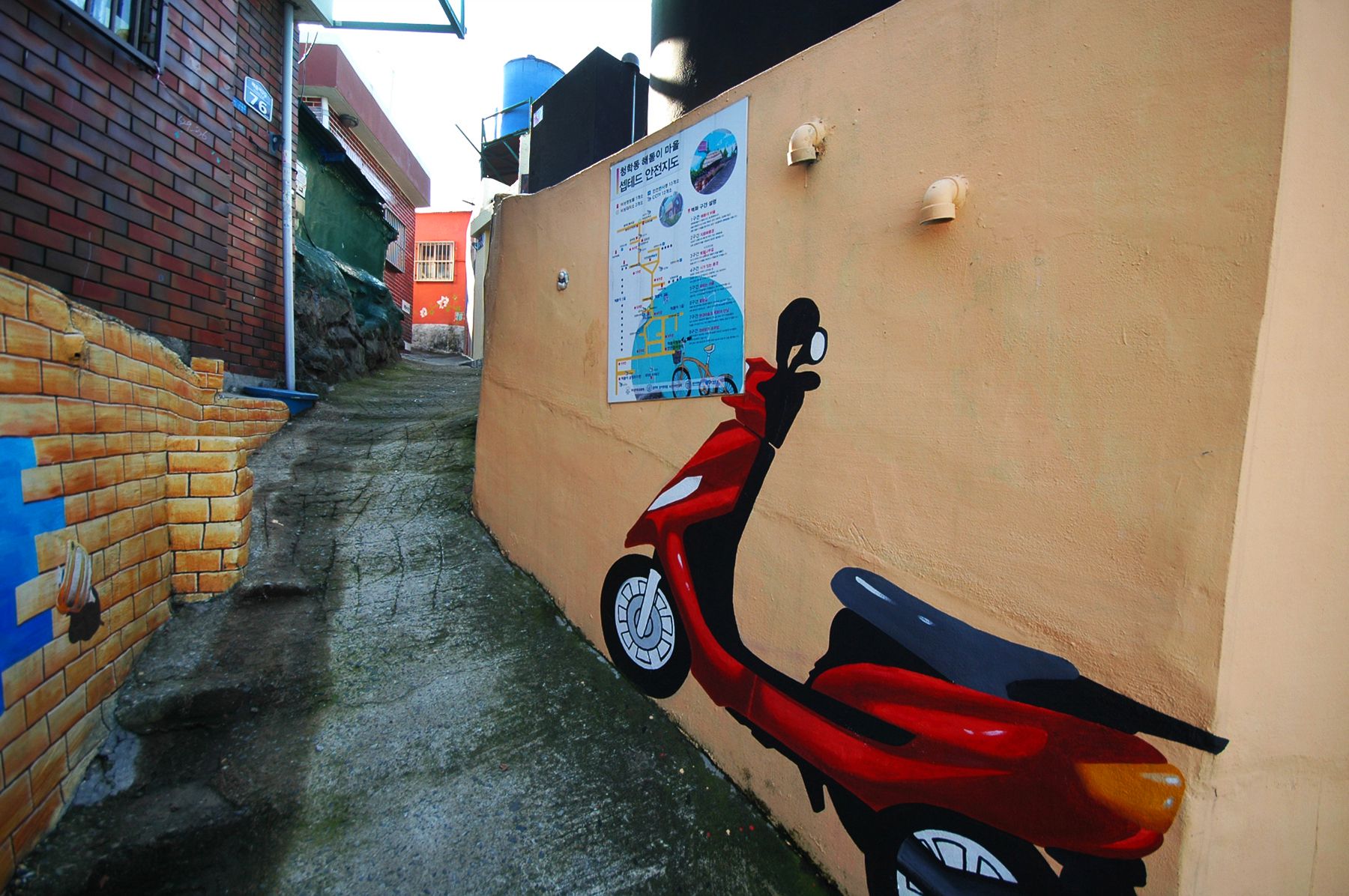 벽화로 만나볼 수가 있으며 마지막 8구간 '경로당과 공부방'은 해돋이 마을 정상에 자리한 마을 어른들의 쉼터인
