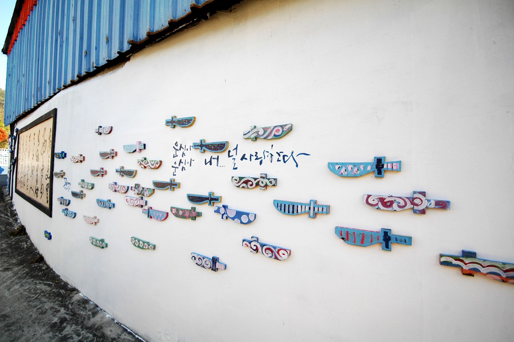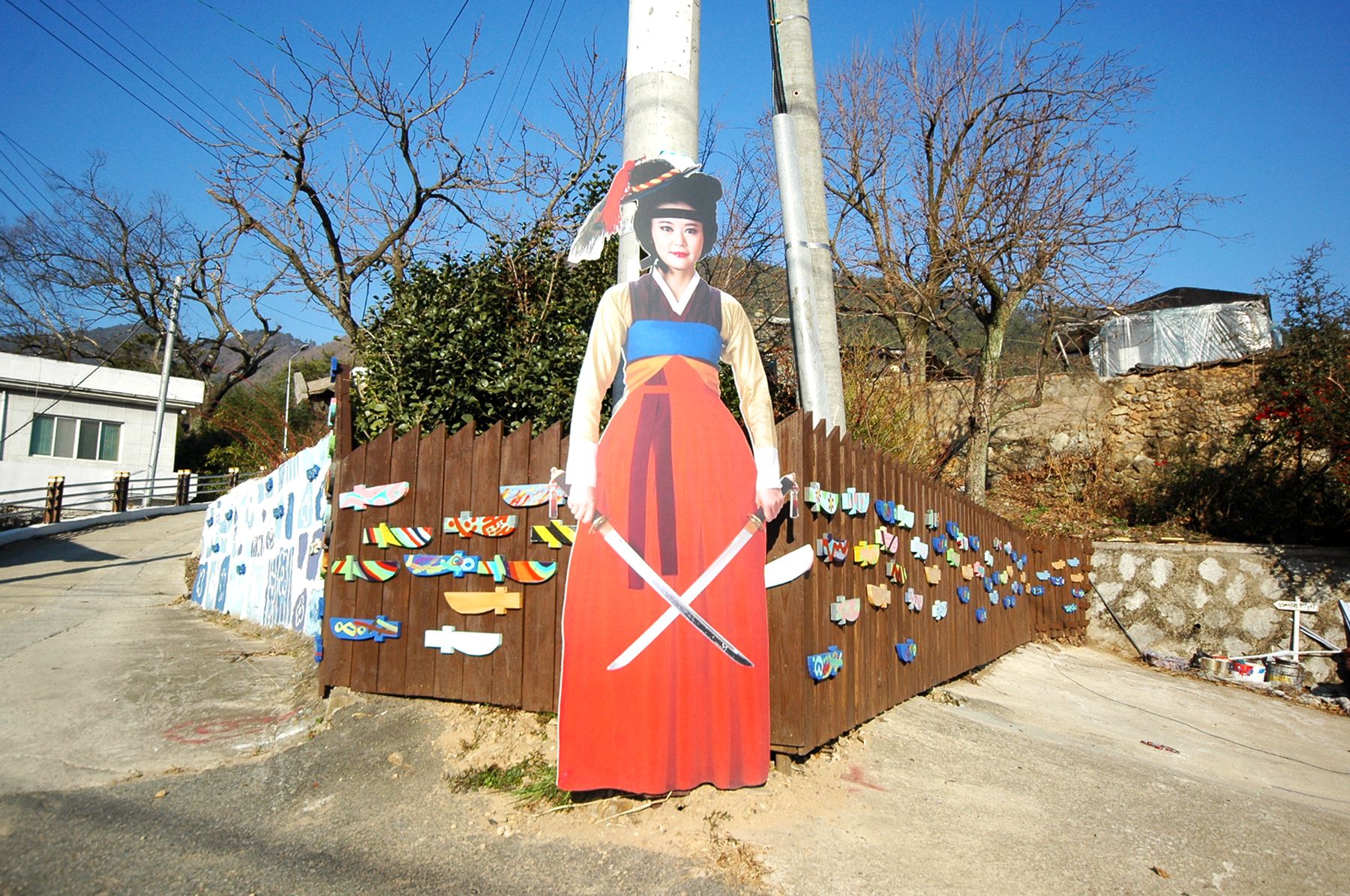마을 곳곳에서 이렇게 검무를 나타내는 칼을 형상화한 작품들을 볼 수 있습니다.