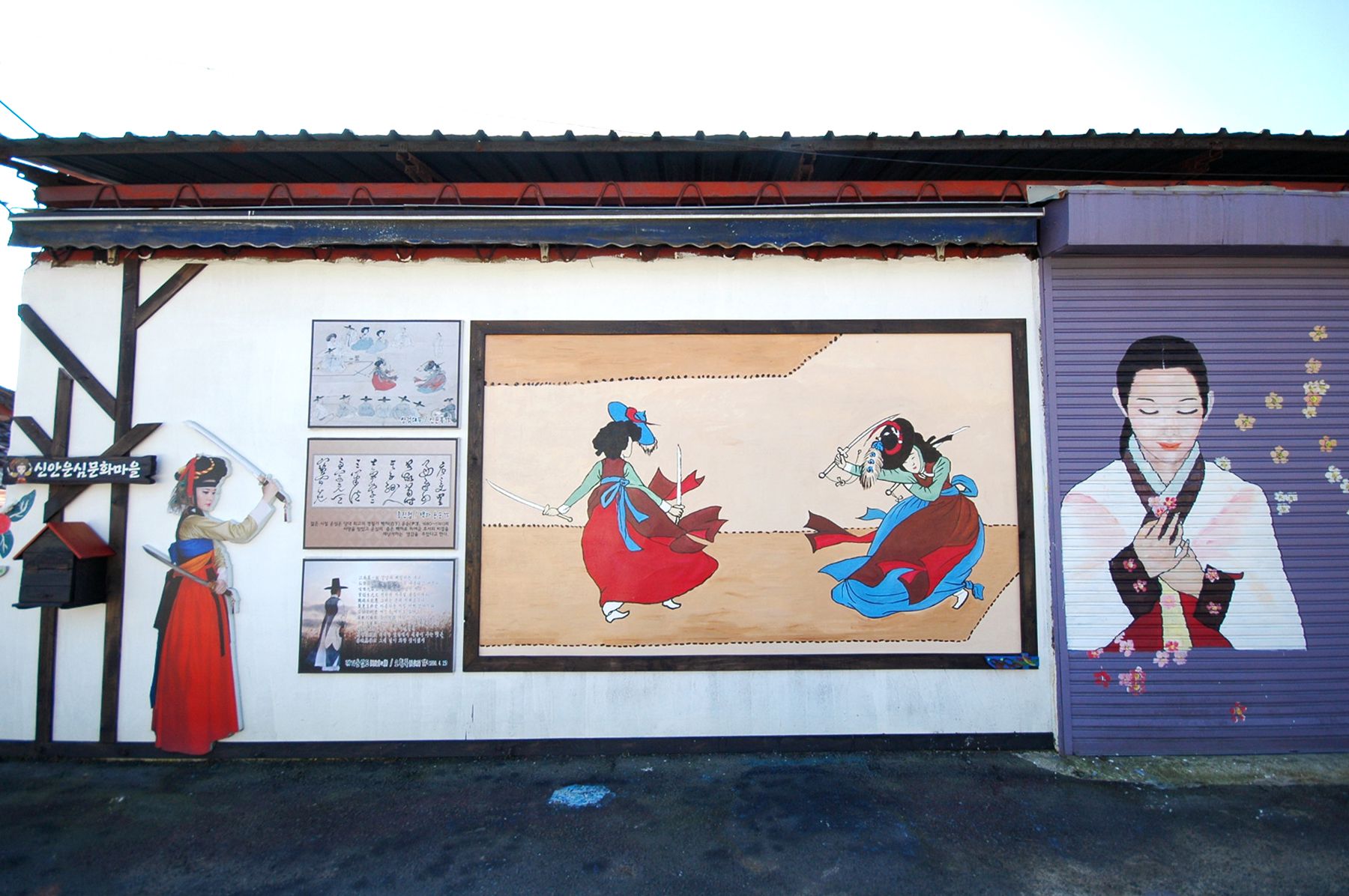 밀양의 예술인들로 구성된 국제현대미술협회의 작가들이 아름다운 벽화를 그려 조성한 마을인 신안운심문화마을을 소개합니다!