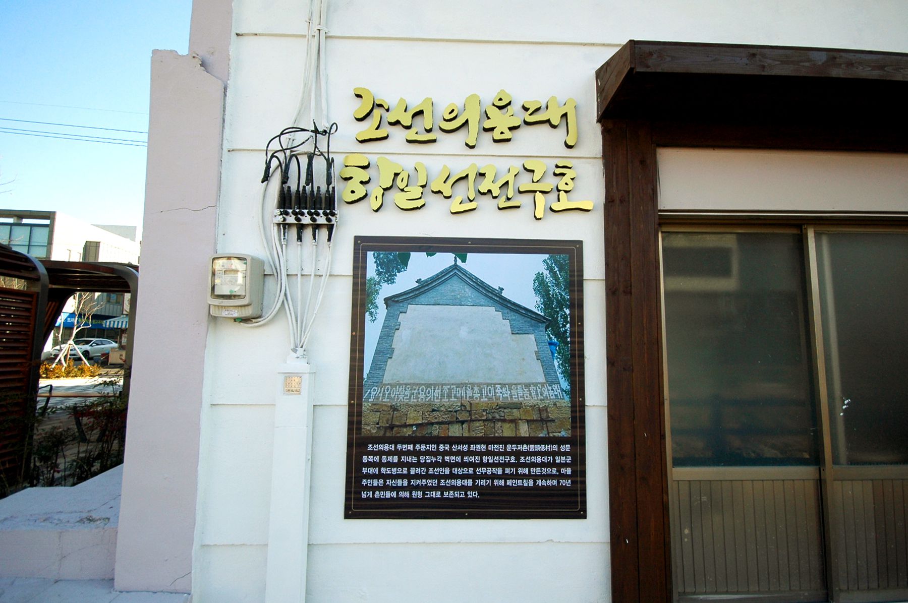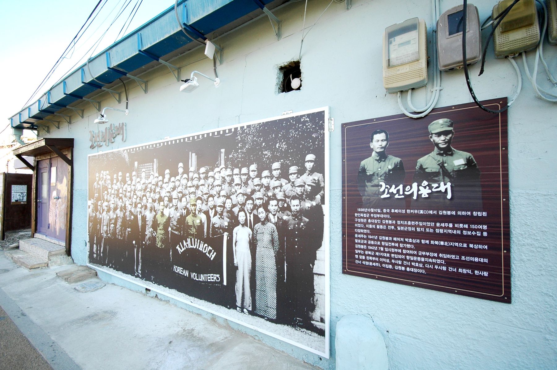 벽화 대신 조선 의용대의 사진으로 채워진 벽입니다.