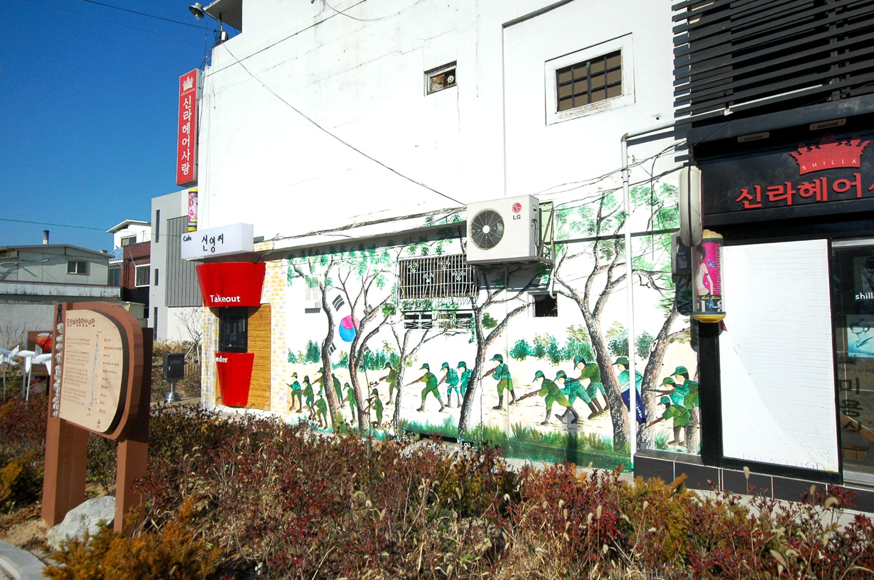 독립군의 모습이 그려진 벽화와