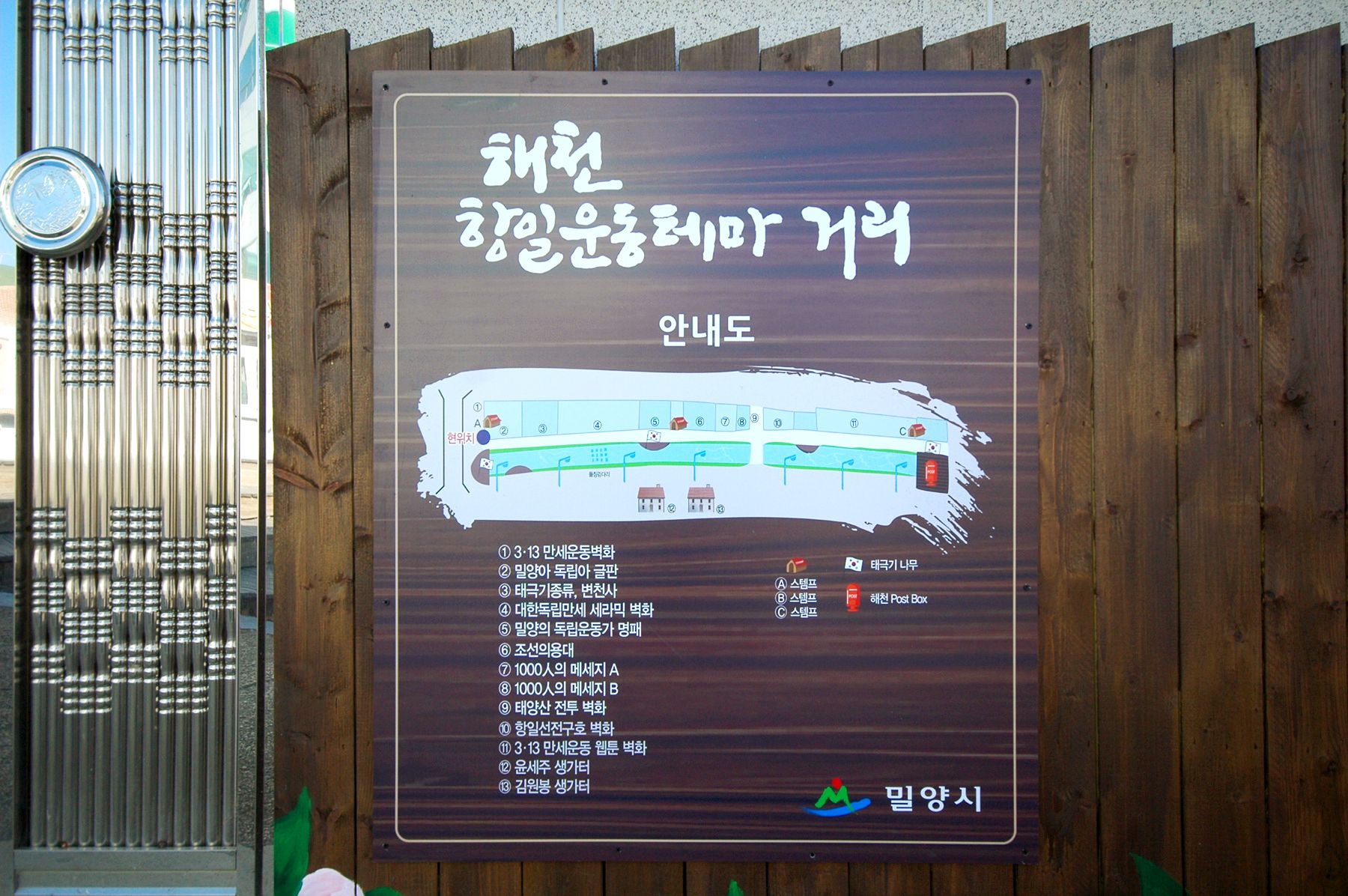 밀양에 오시면 해천 항일운동 테마거리에서 여유롭게 산책도 하시면서