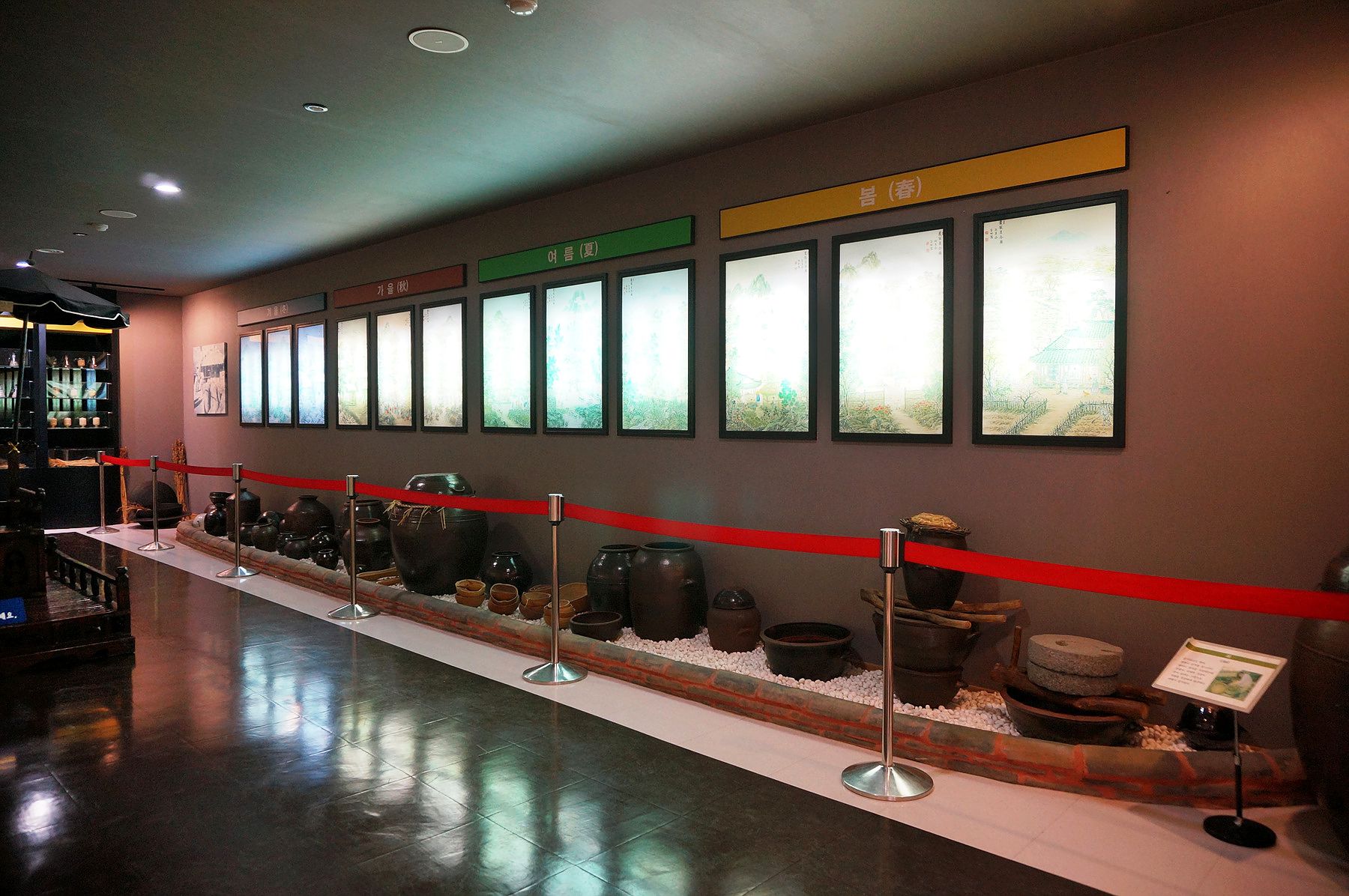 봄, 여름, 가을, 겨울이 지나면서 경작되는 다양한 작물과 식그릇이 전시되어 있어서