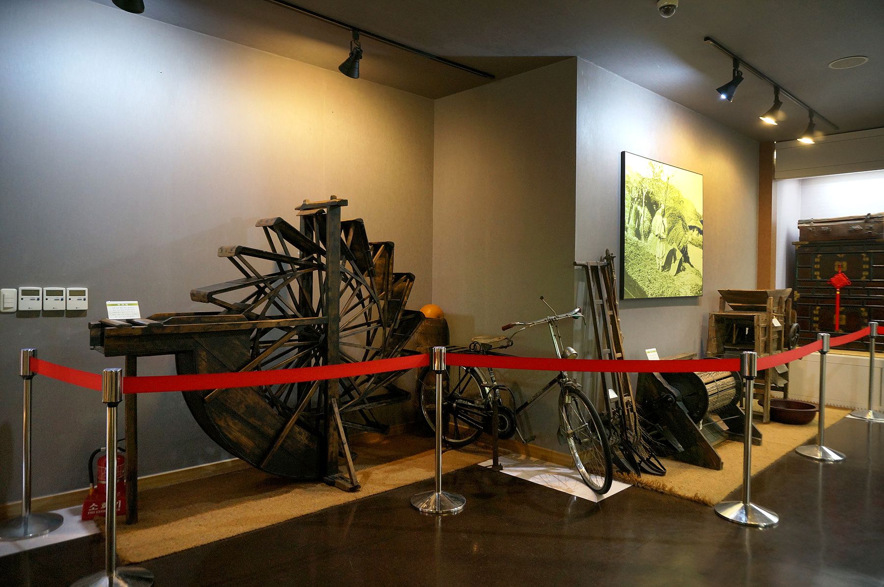 농사에 사용되었던 다양한 농기구들과 함께 예전의 월촌 마을의 모습을 담은 사진이 있어