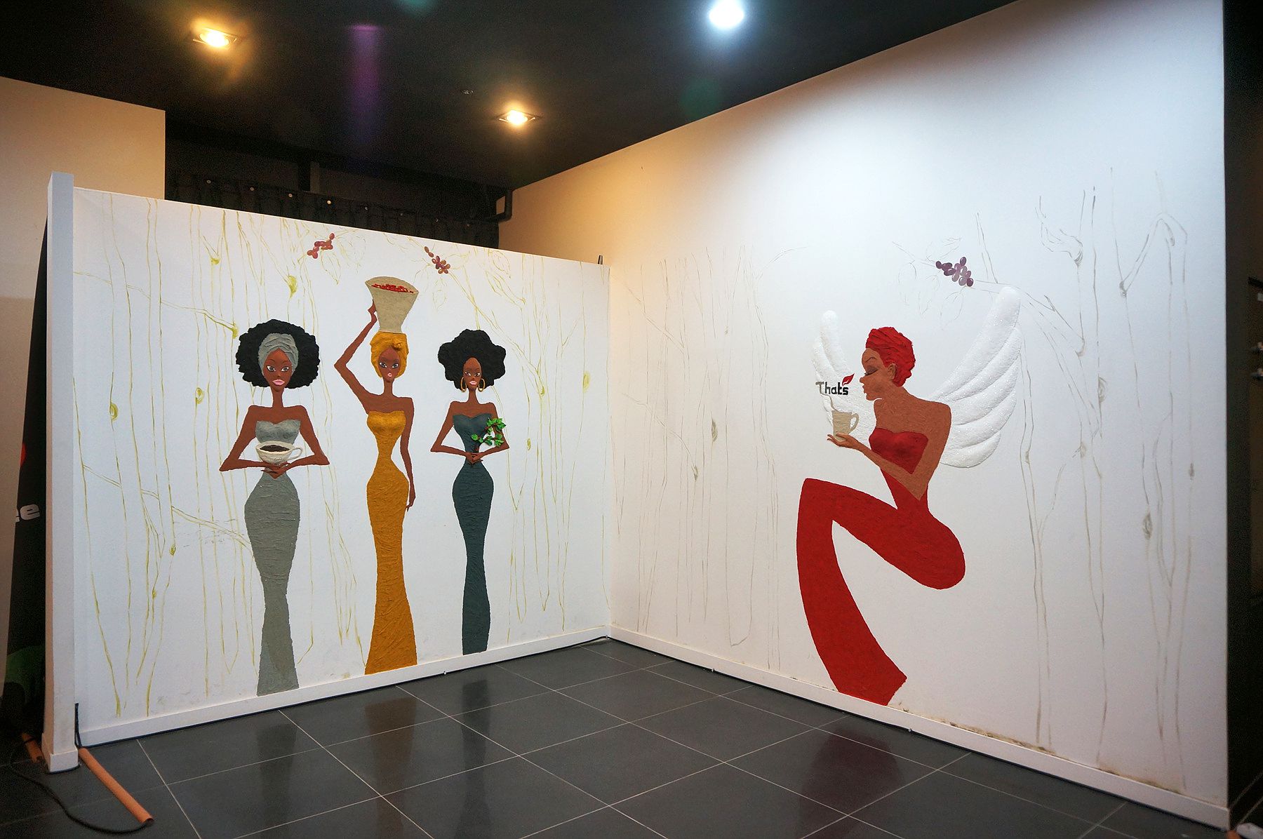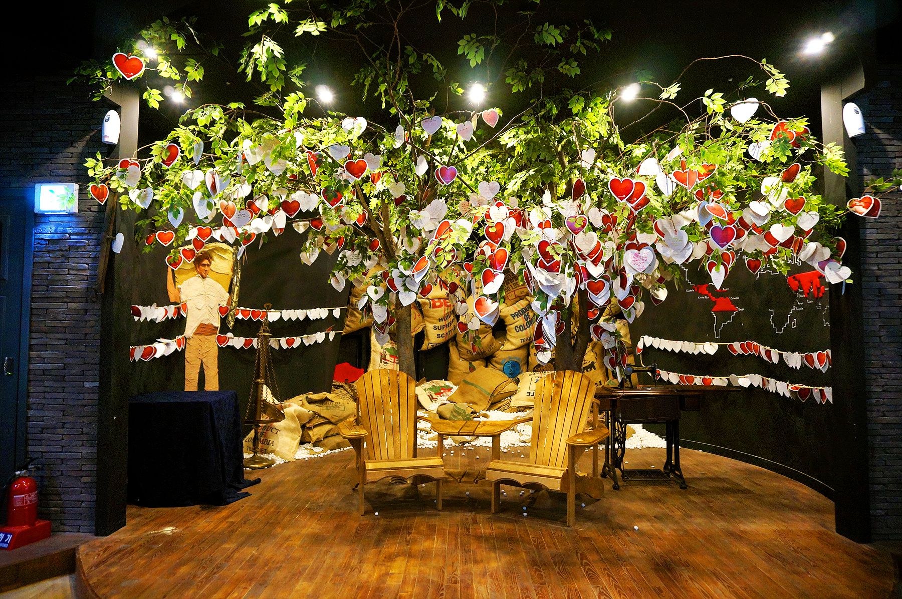 커피 씨앗에서 한 잔의 커피까지의 과정, 포토존(커피나무, 루왁고양이, 생두포대DP, 아프리카 커피 수확 여인)이 준비되어 있습니다.