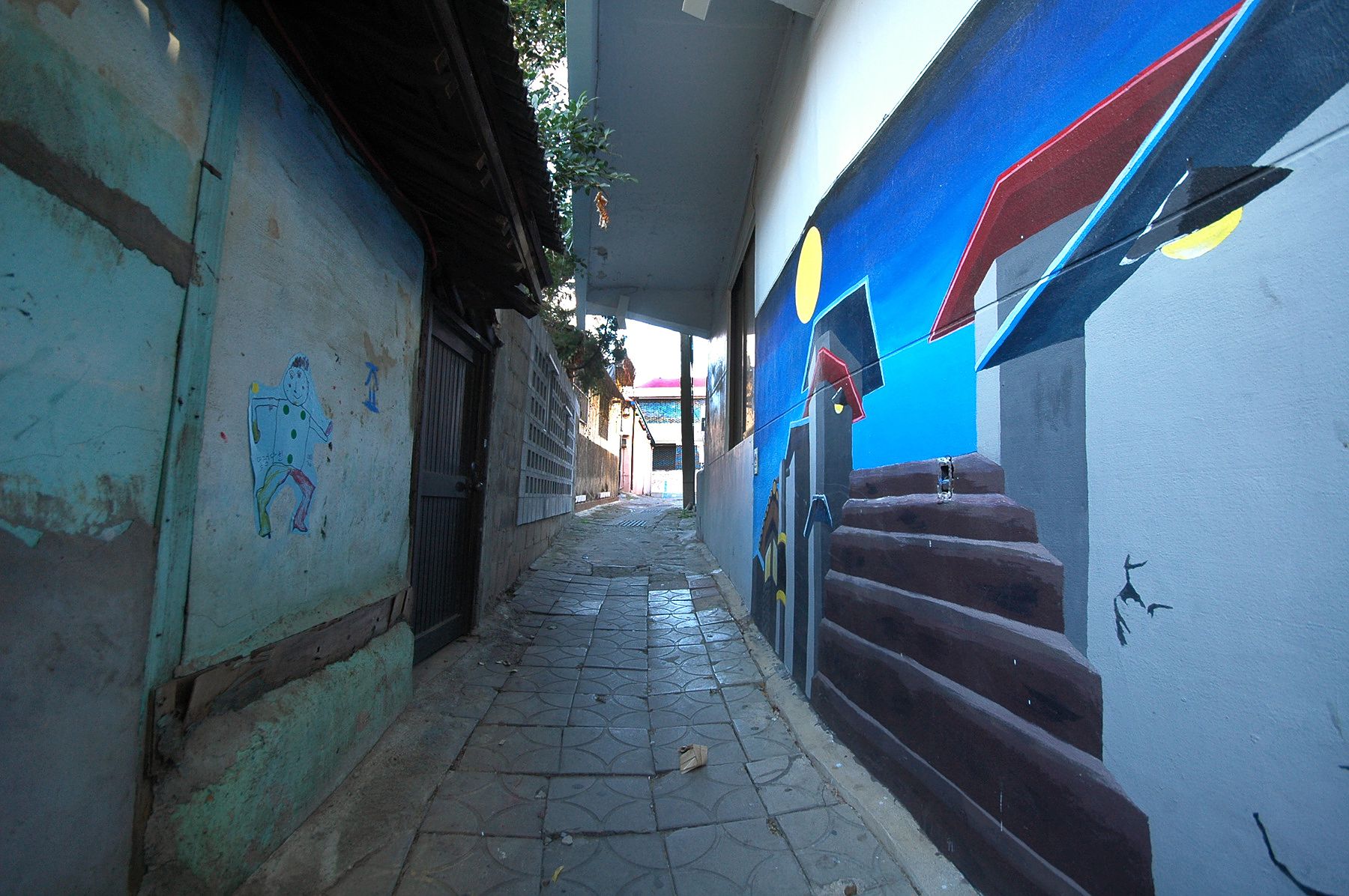 색다른 벽화도 볼 수 있으며 재미있는 간판을 찾는 재미도 쏠쏠한 골목길입니다.