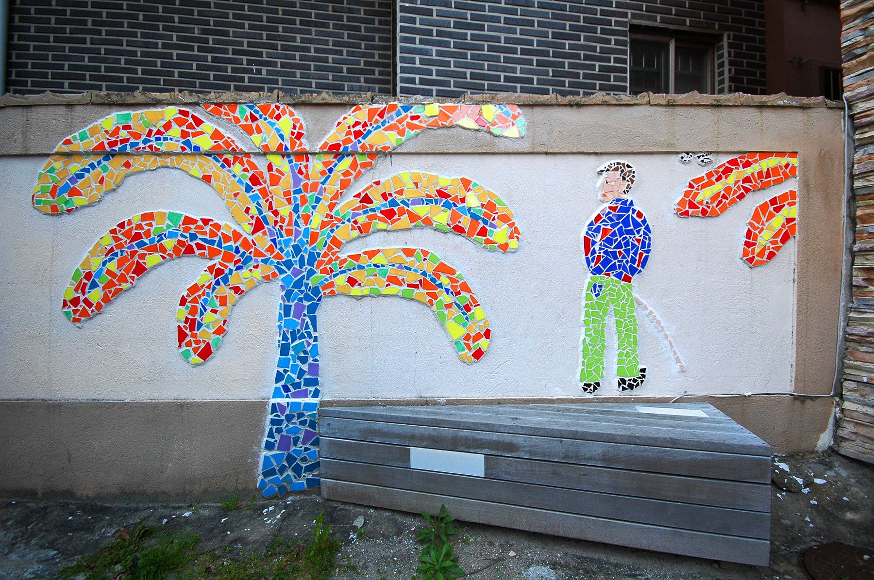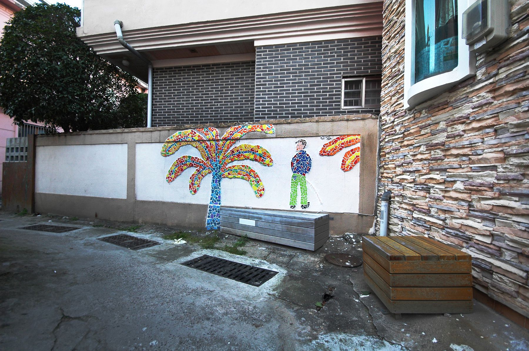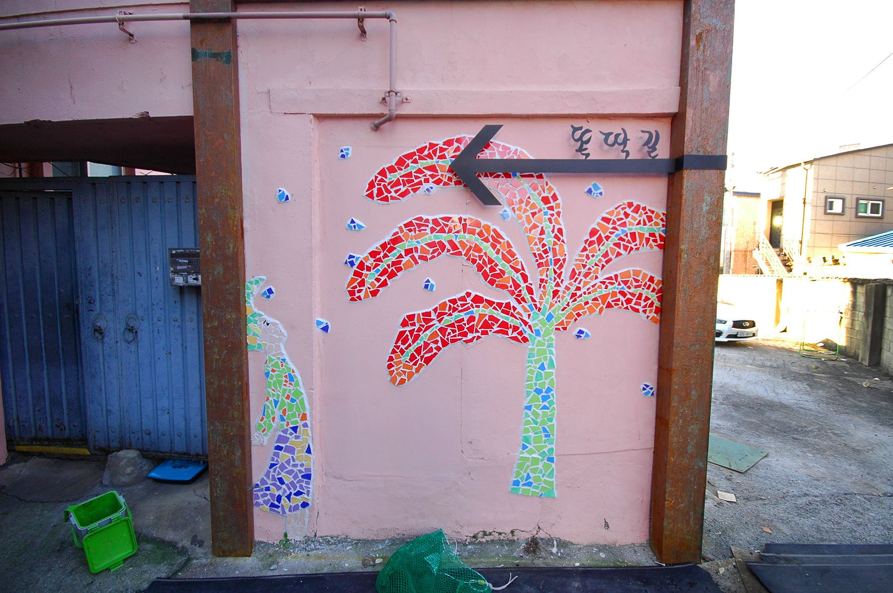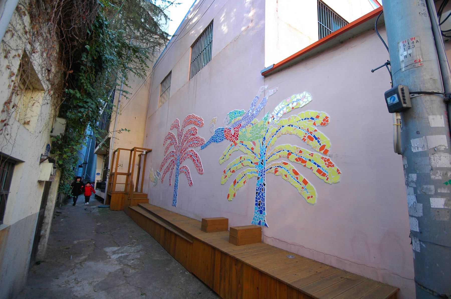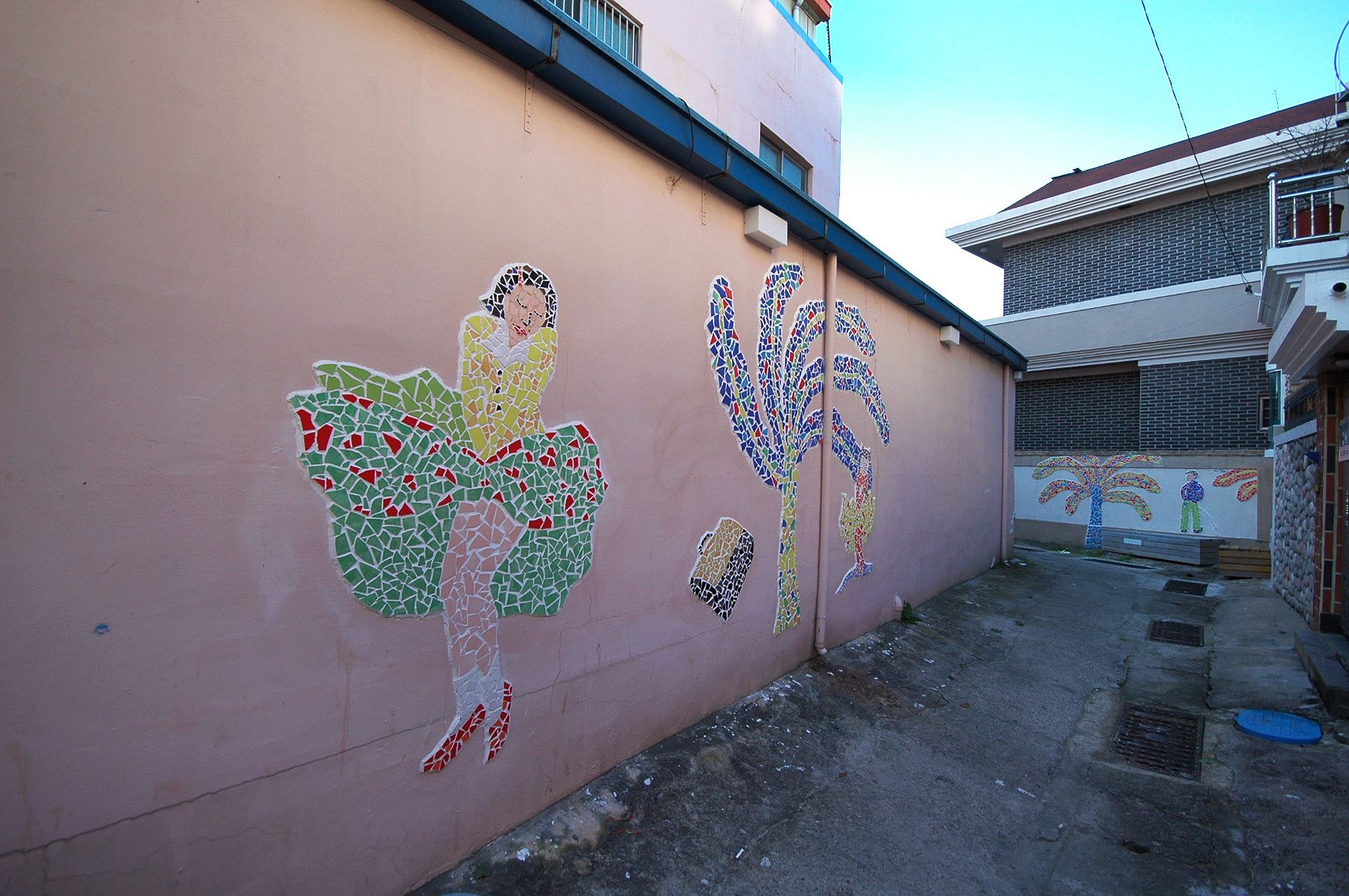 타일을 모자이크 기법으로 만든 벽화 작품도 볼 수 있는데요.