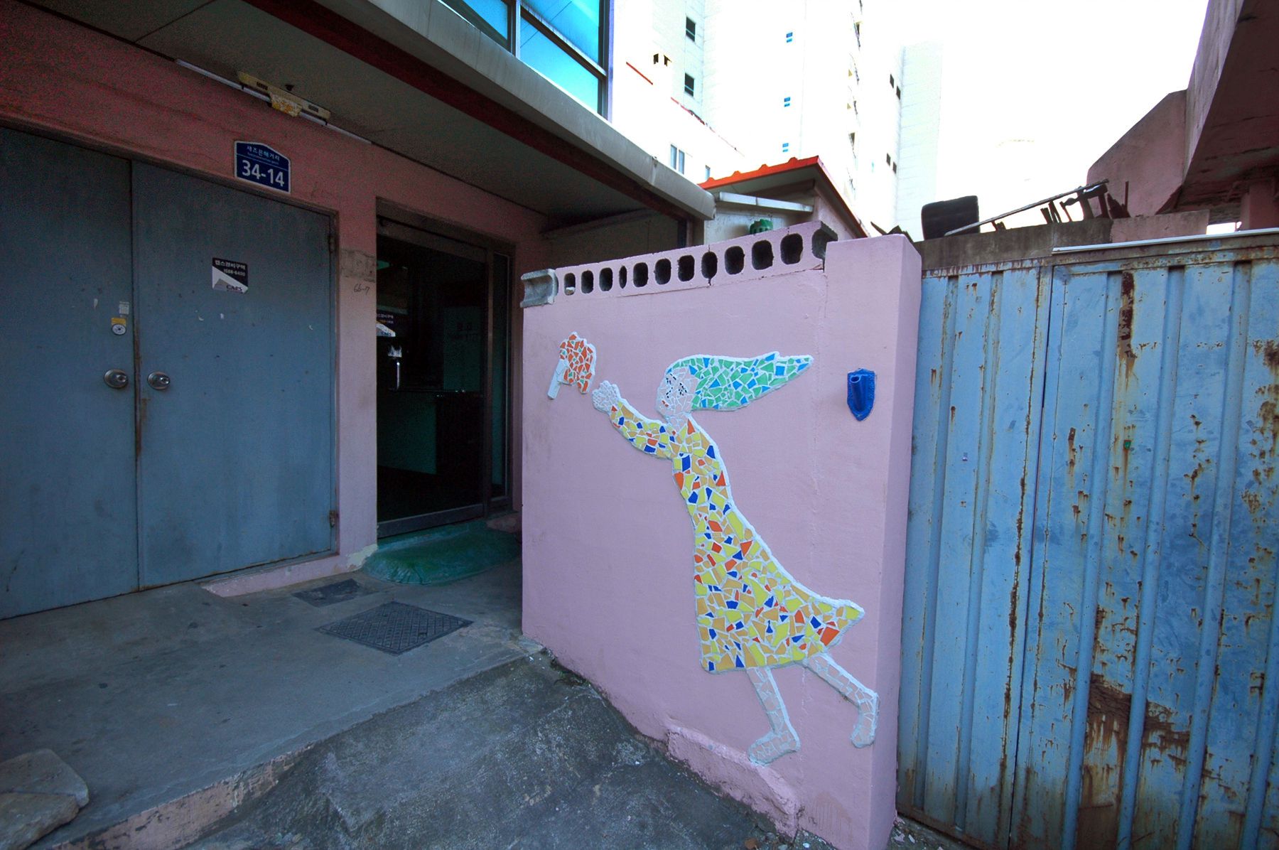 노상방뇨하는 모습이 재미있게 타일벽화로 되어 있습니다.